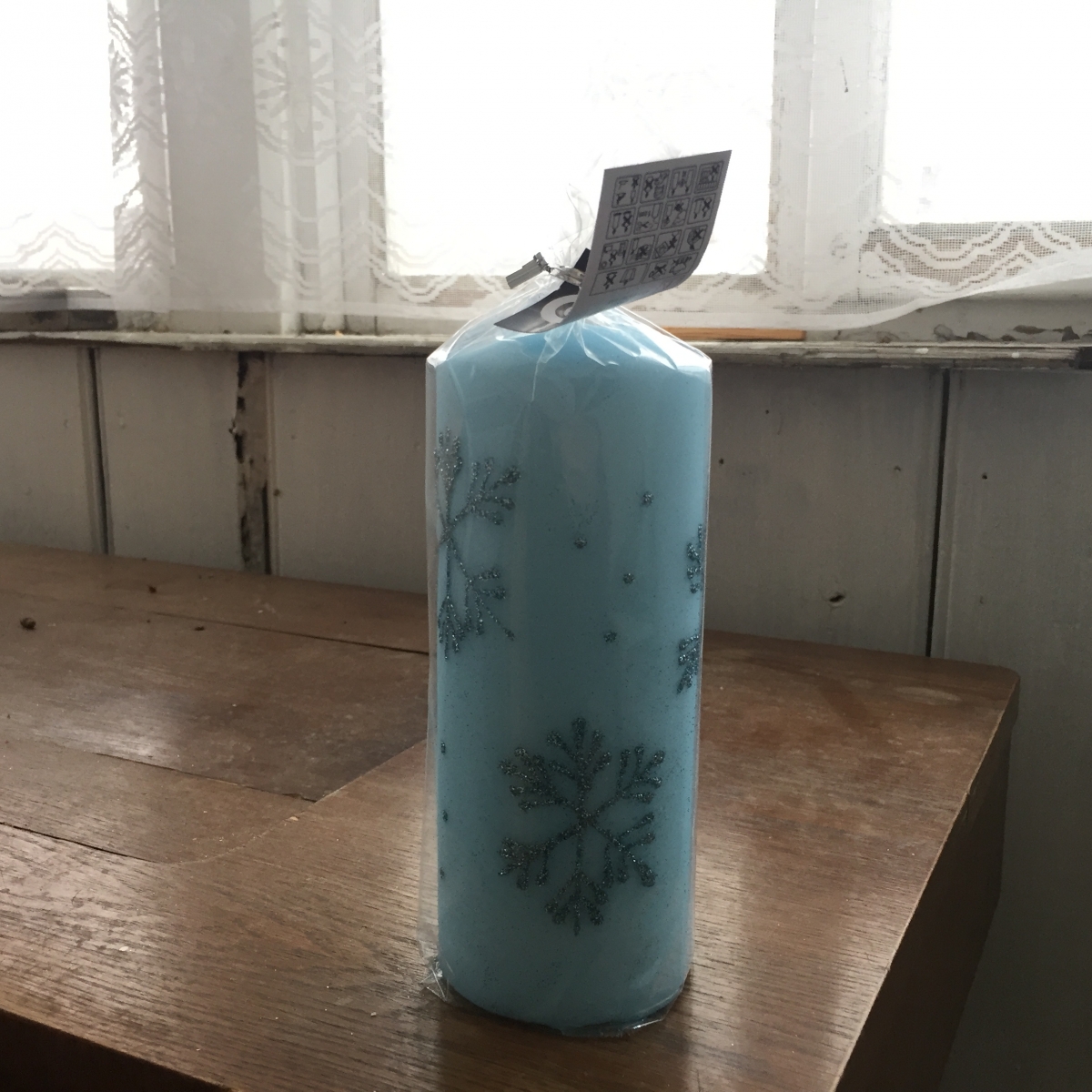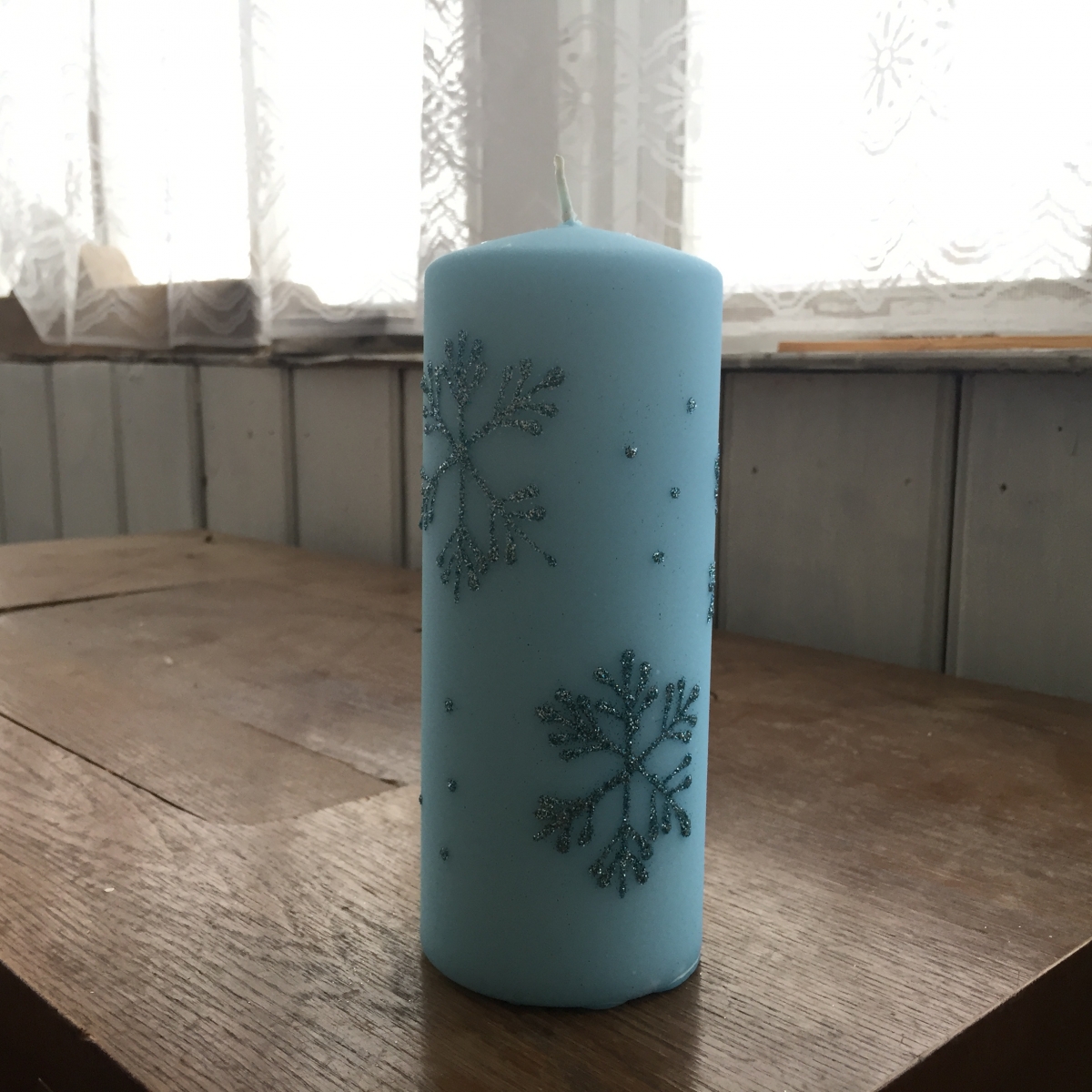Adventné sviece snehová vločka valec modrý 7x18cm