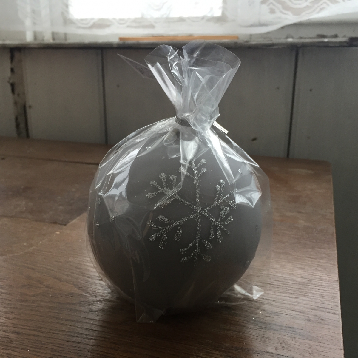 Adventné sviečky snehová vločka guľa šedá 10cm