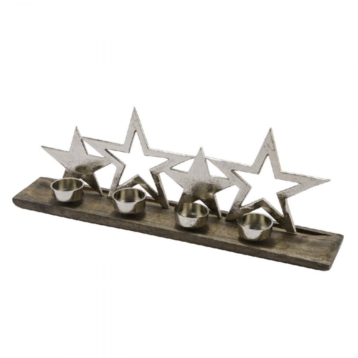 Adventný svietnik s vianočnými hviezdami má rozmery 44x8x16cm a preto sa stane dominantou interiéru. Mangové drevo a strieborný povrch hliníka je večný.