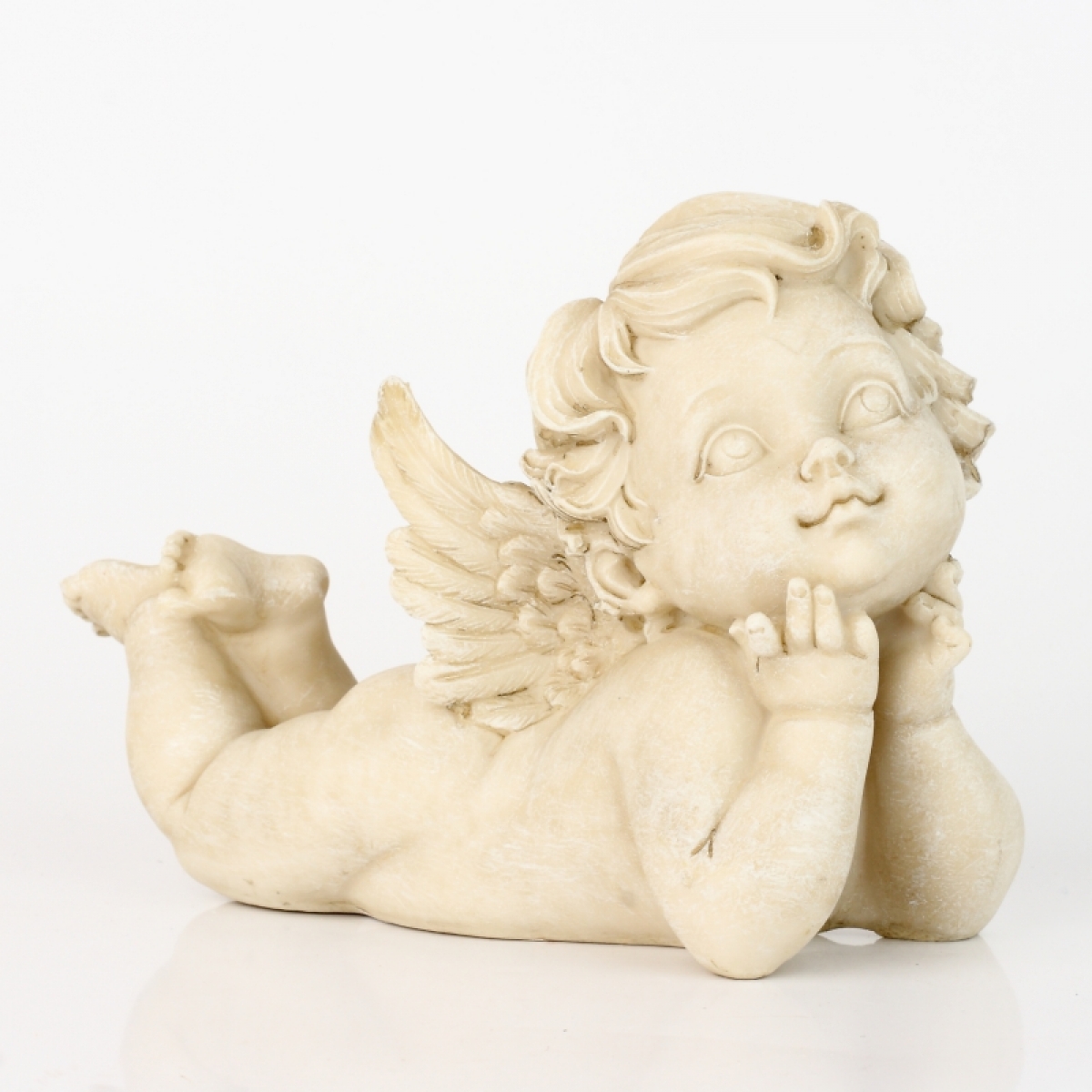 Malý ležiace anjel s krídelkami a rukami zloženými pod bradou.