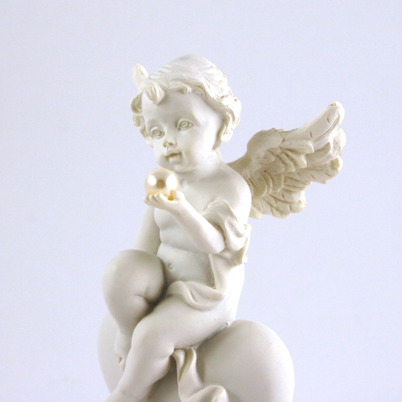 Anjel ponúka s nevinným detským výrazom perlu . Drobná plastika poteší každého , kto jej bude obdarovaný