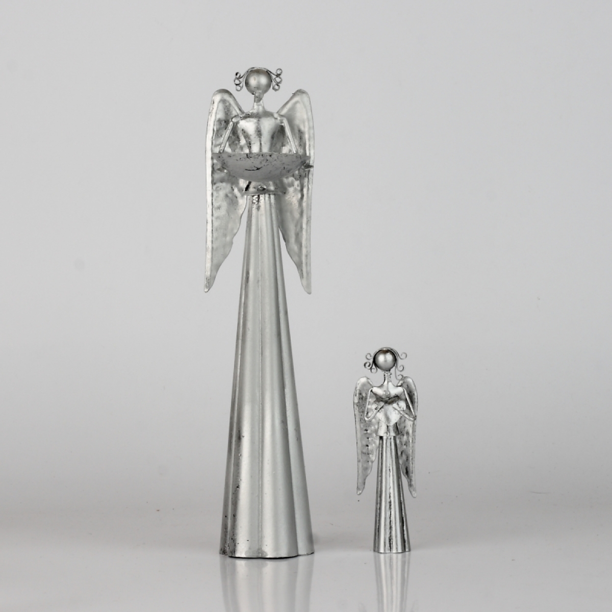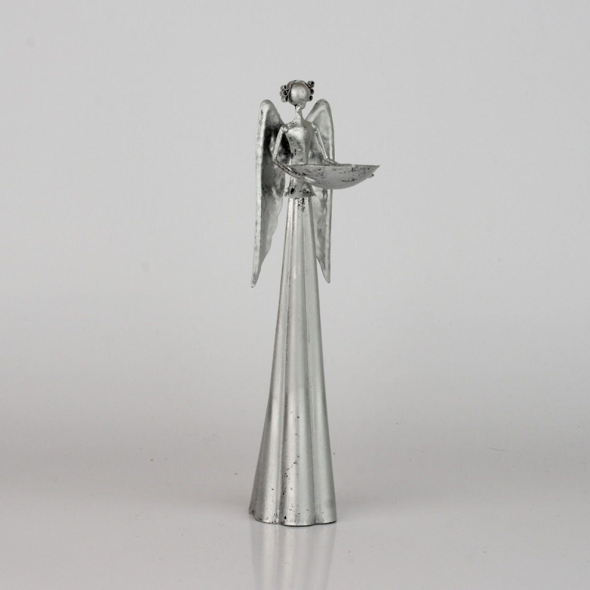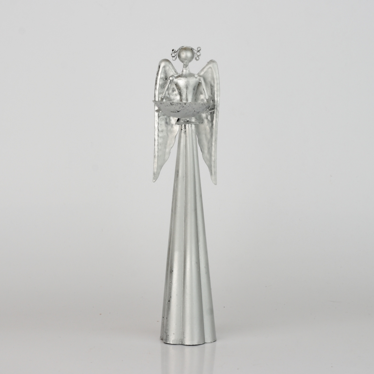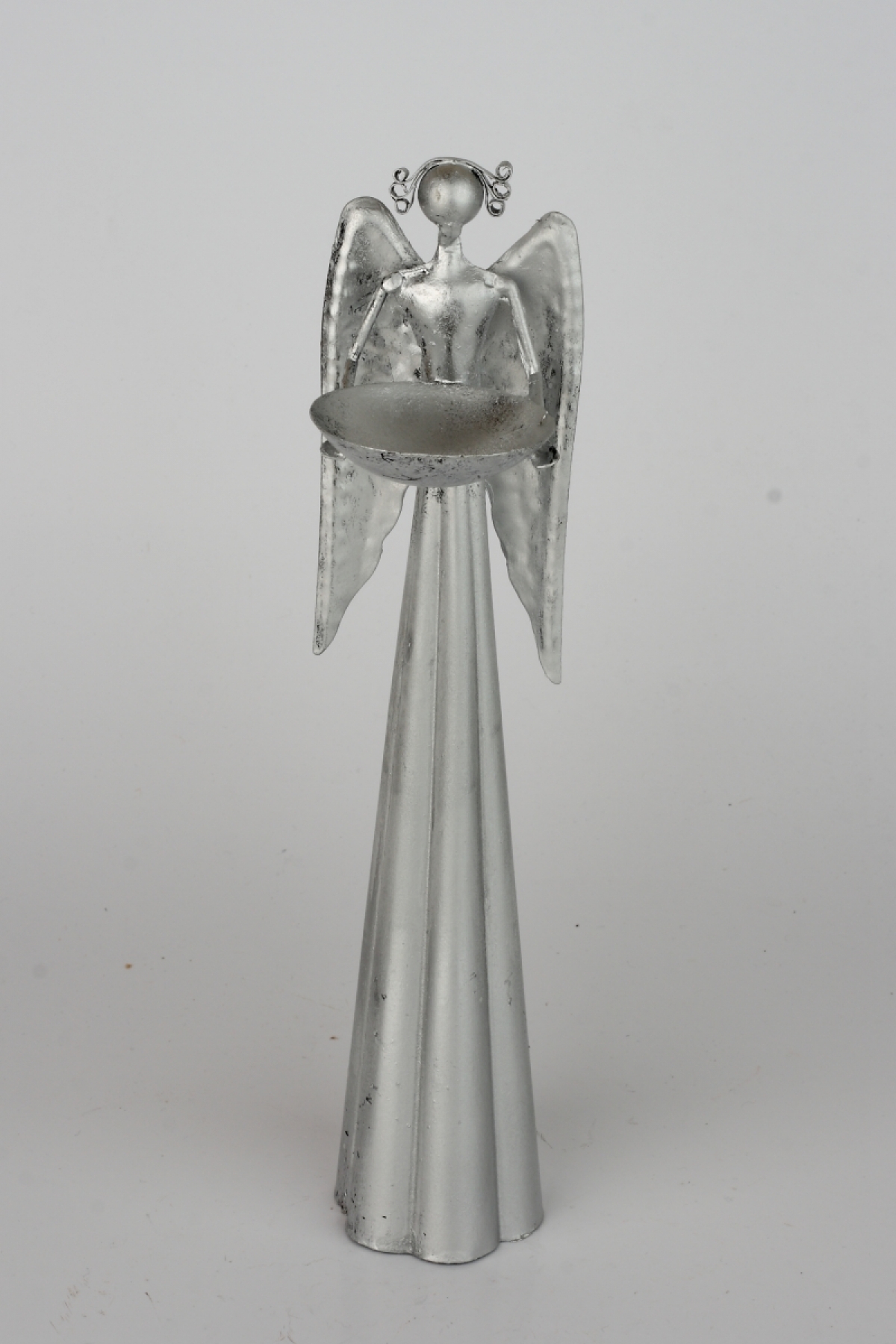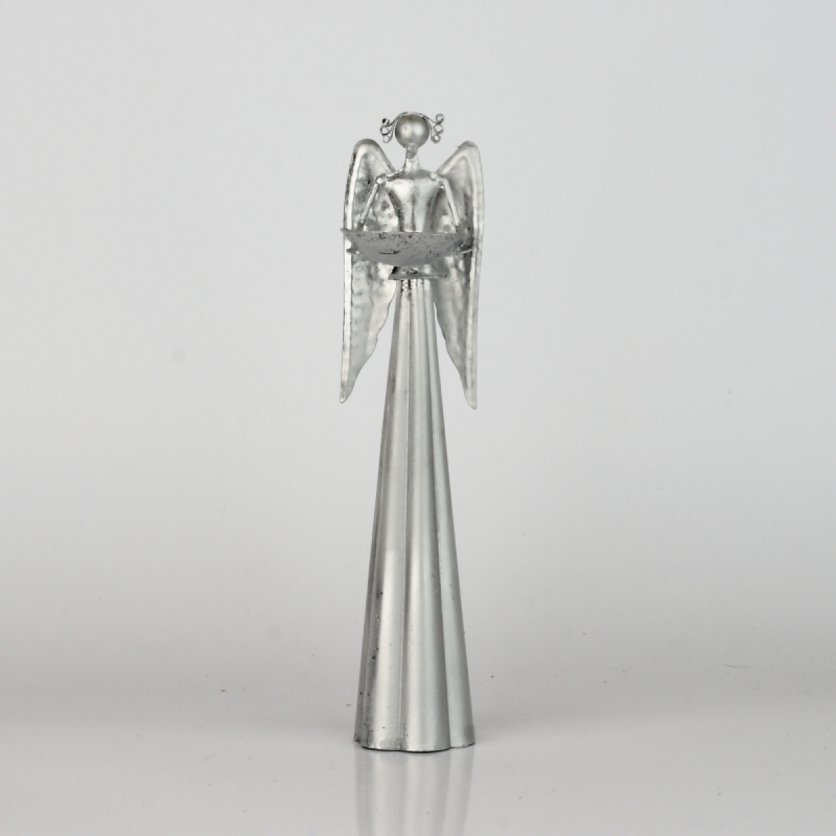 Anděl plechový s miskou na sviečku 25,5cm umocní vianočnú atmosféru a a svetlo sviečky zahalí priestor kúskom tajomna.