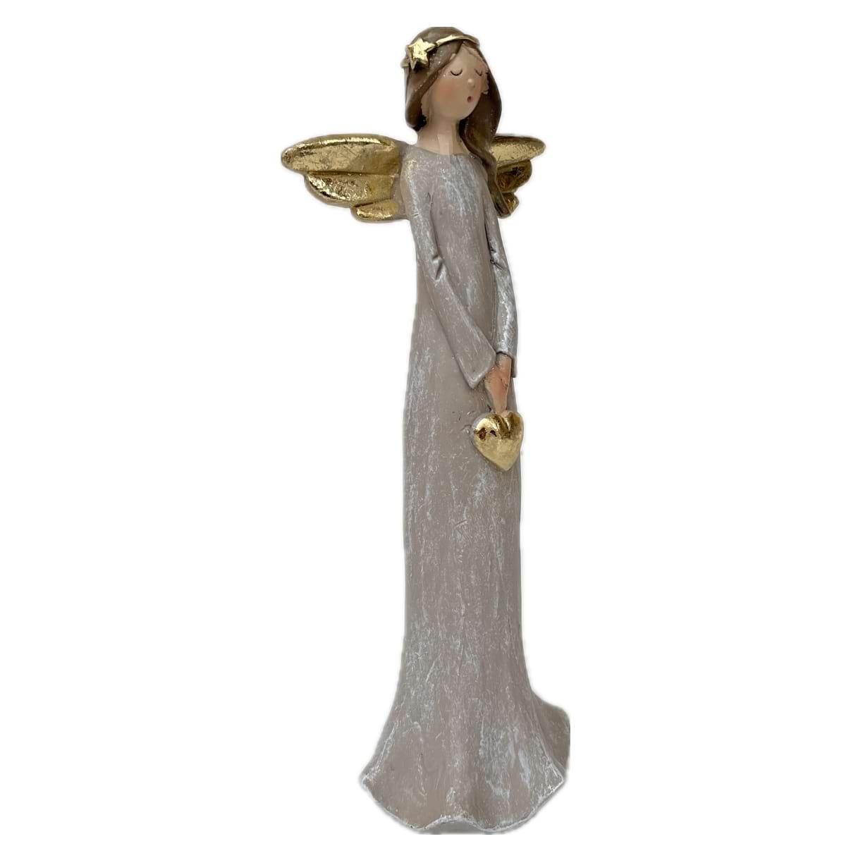 Stúpa k vám z pokoja domova - polyresinový anjel Serafín so srdiečkom, je vysoký 20,3 cm a drží srdce plné jemnosti.