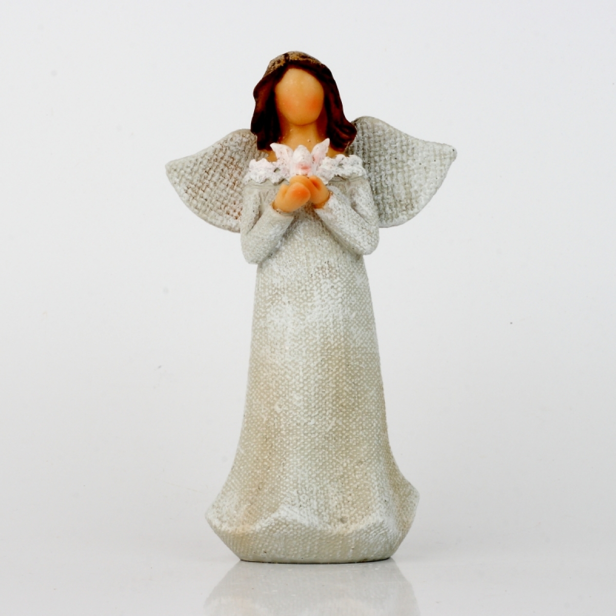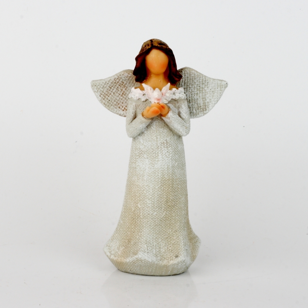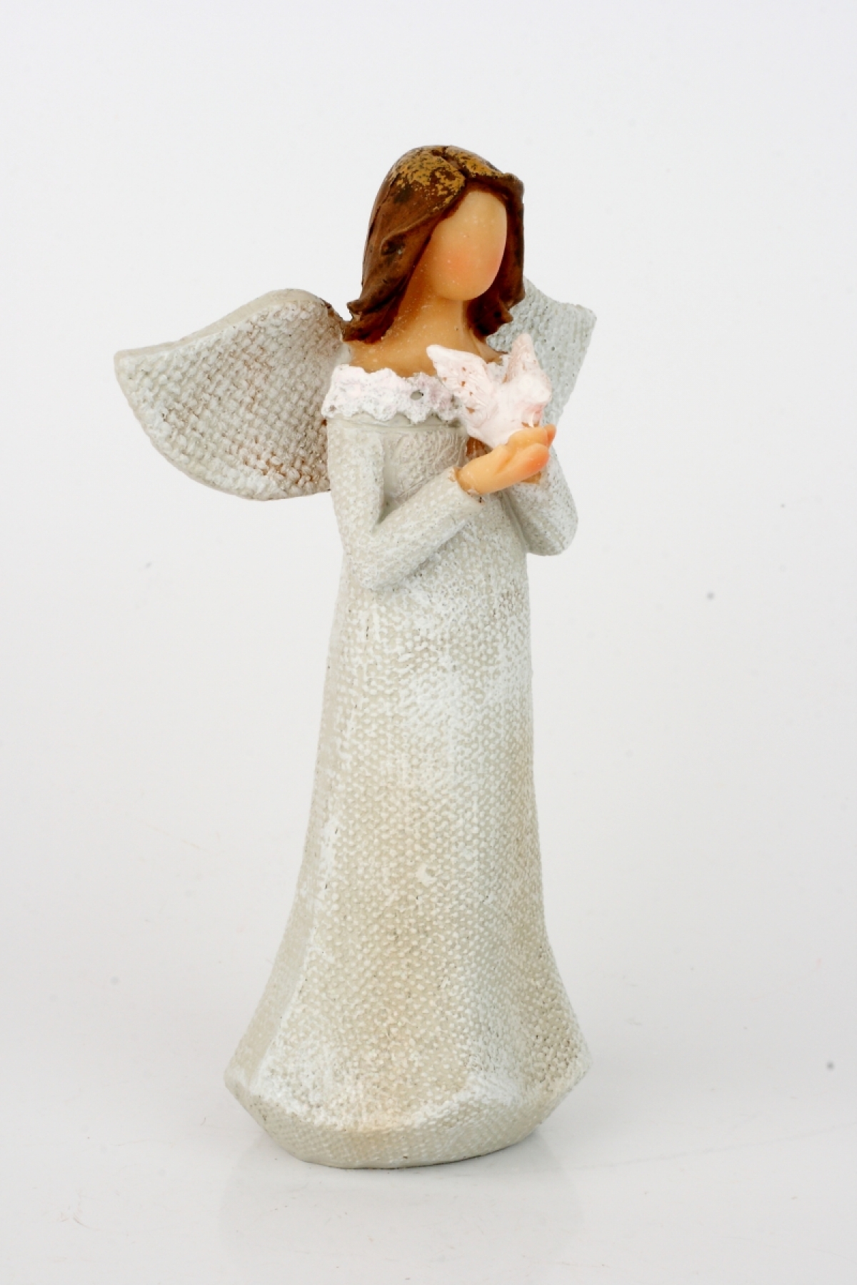 Anjel v šatách s čipkou a holubicou 14cm