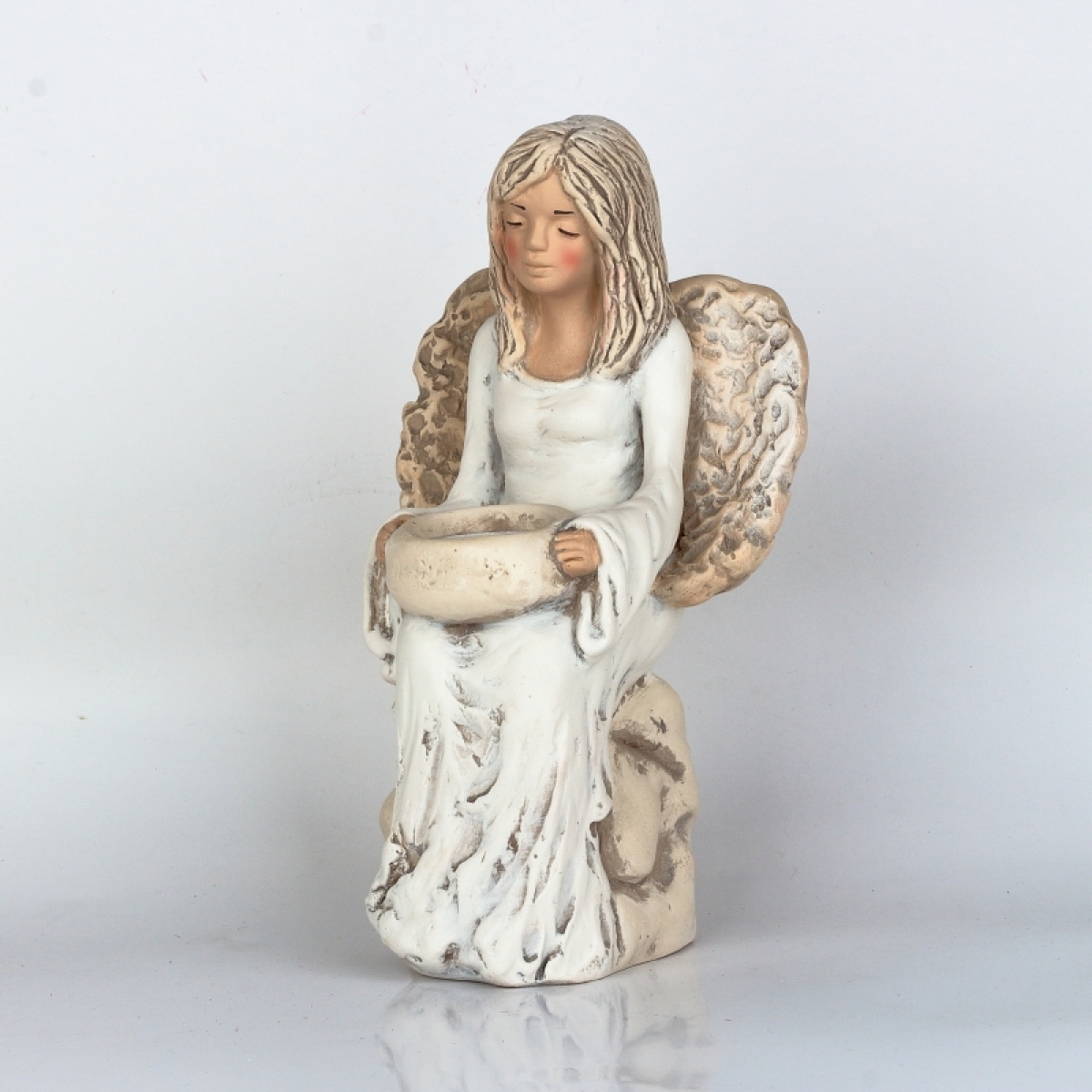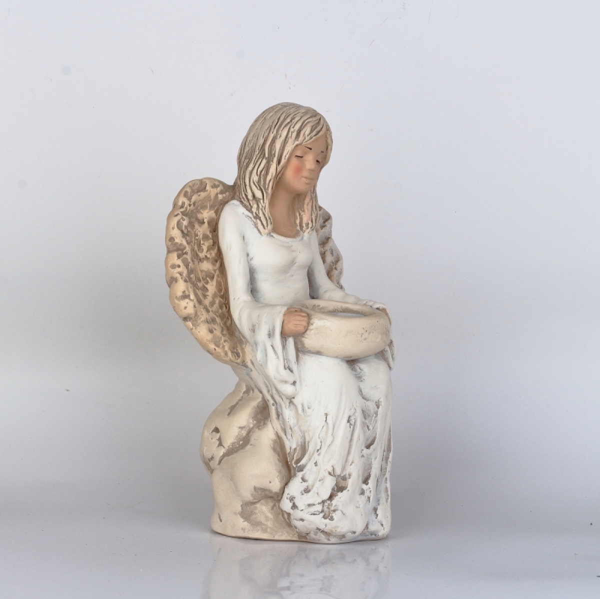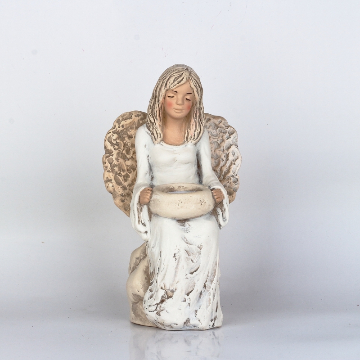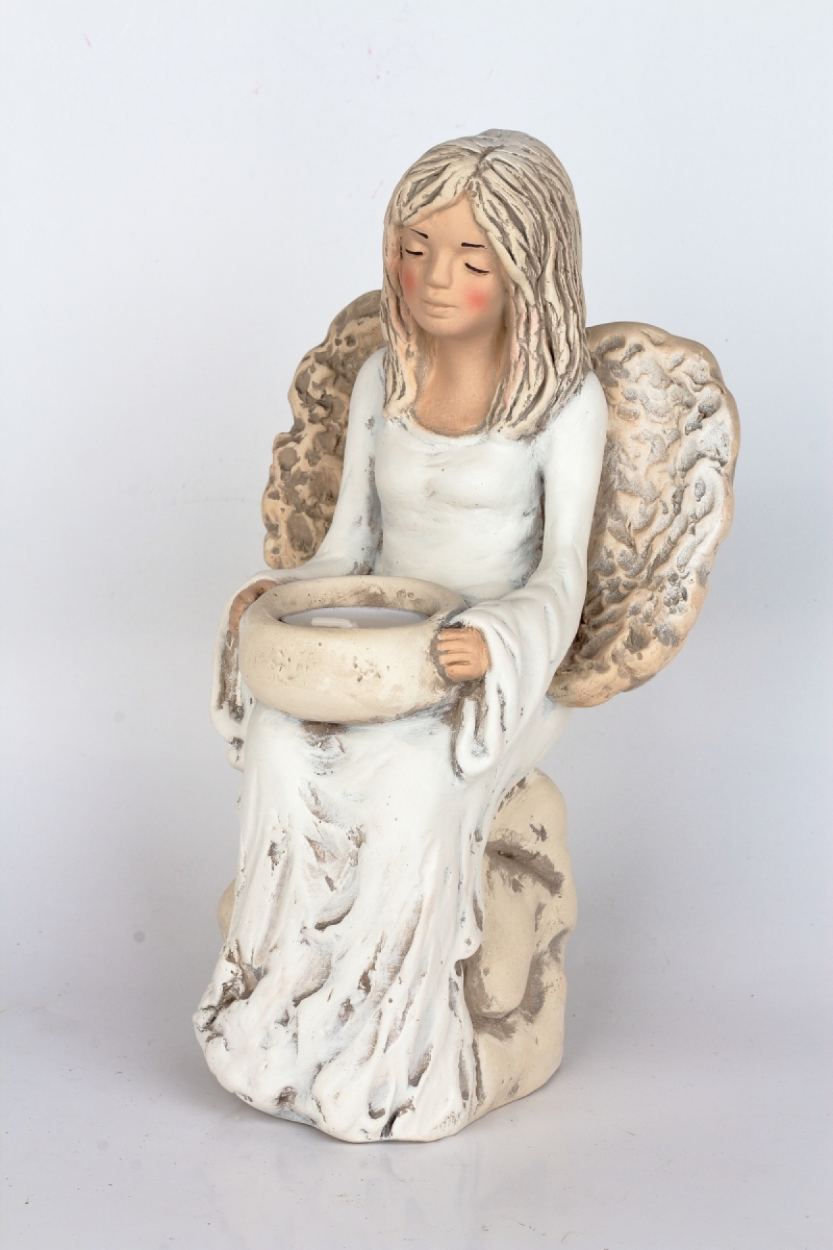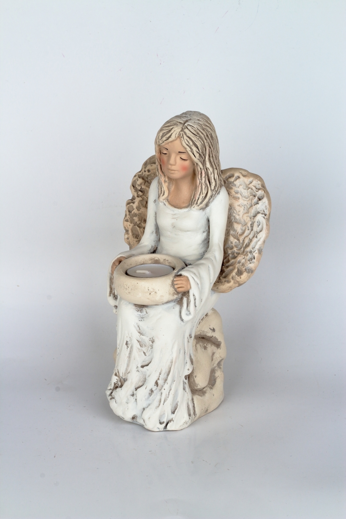 Prekrásny sediaci anjel s výškou 26cm, ktorého môžete doplniť čajovou sviečkou a rozžiariť tak priestor pokojnú energiou.