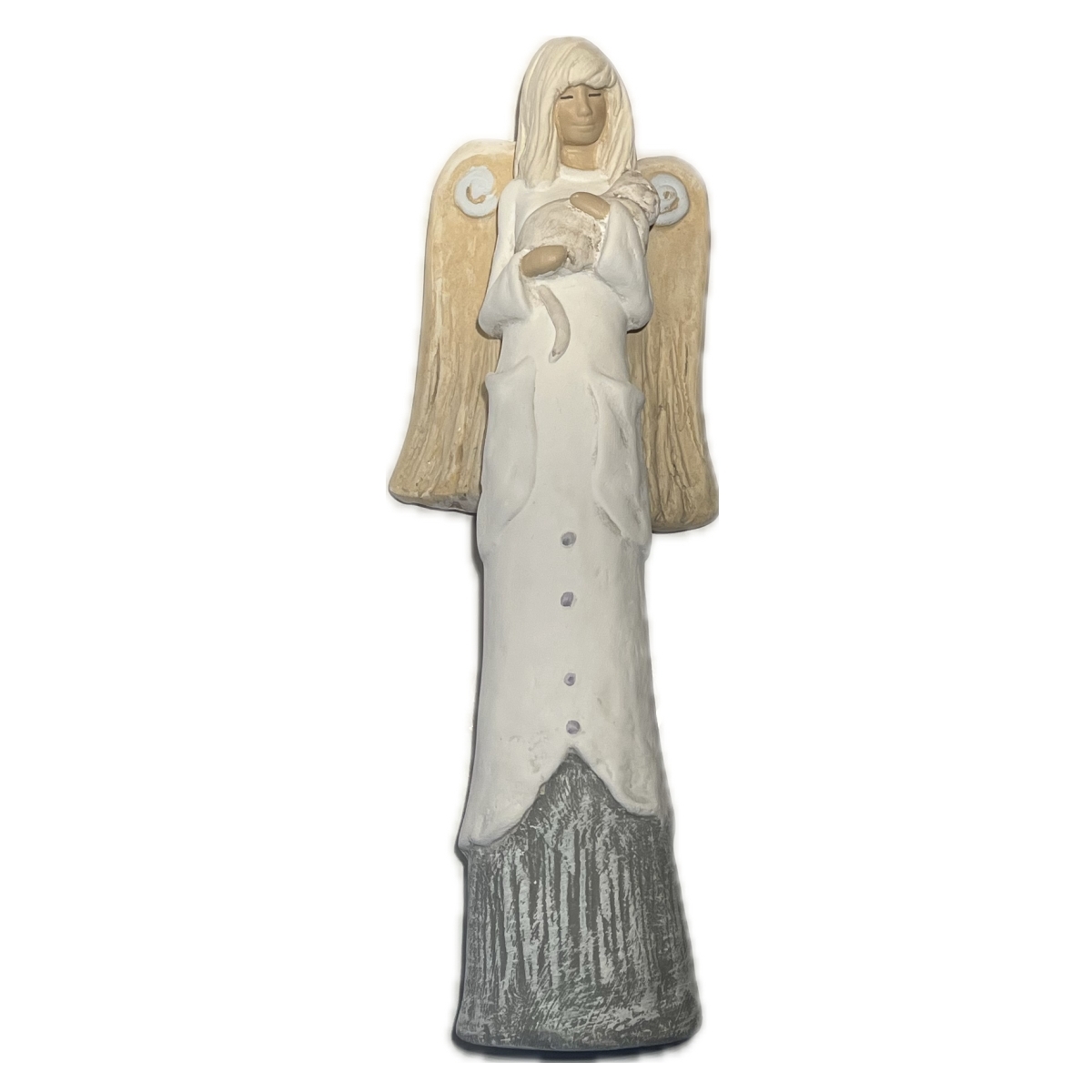 Ručne vyrábaná soška z priemyselnej sadry, s ručnou kresbou.