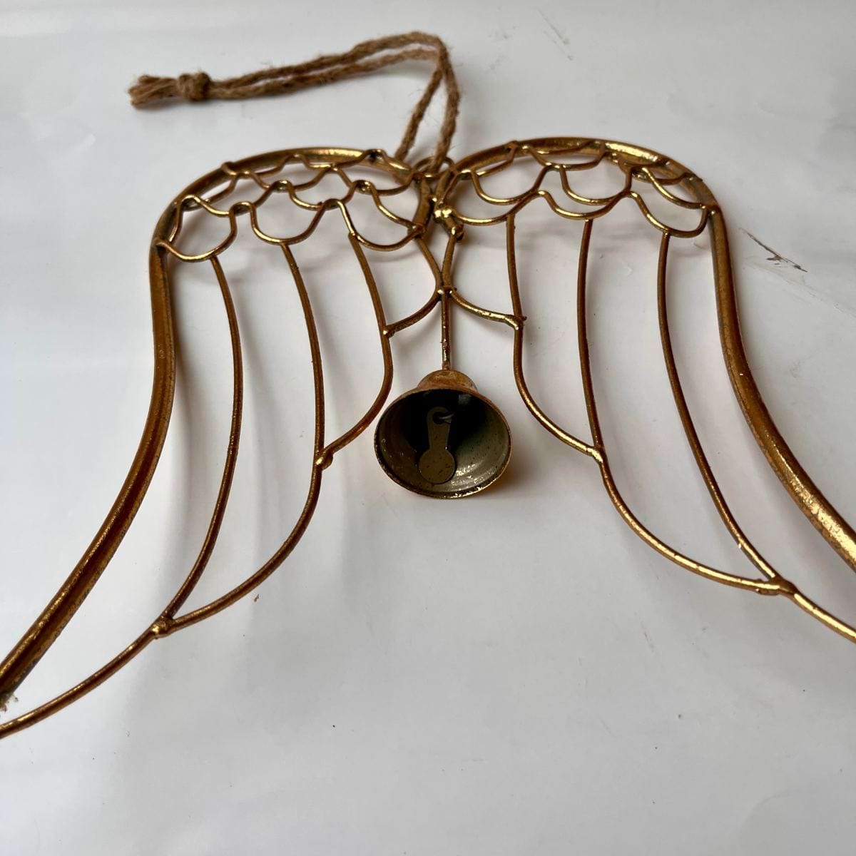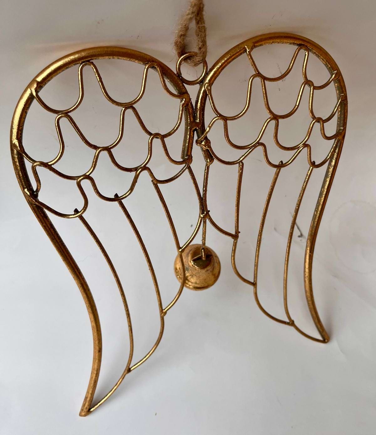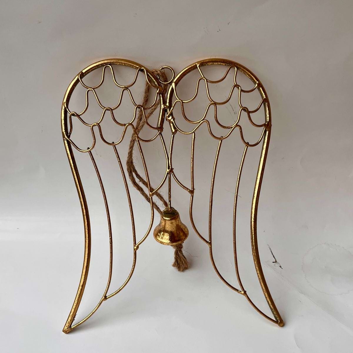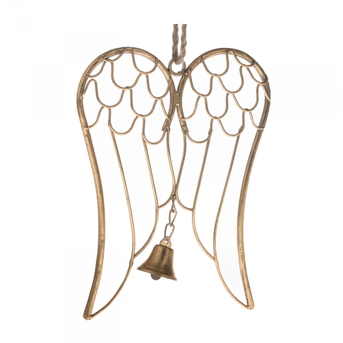 Anjelské krídla Auriel — kovové vianočné dekorácie so zvončekom (23 × 18,5 × 1,5 cm)