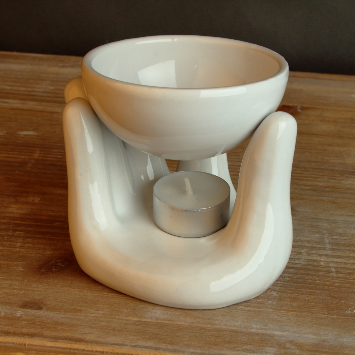 Aromalampa keramická má dve časti - spodnú dlaň, ktorá je určená na umiestnenie zapálené čajové sviečky. Do hornej časti dáte vonný vosk alebo vodu s prímesou vonné esencie. Potom si môžete sadnúť, treba s obľúbenou knihou, a užívať si krásnu vôňu.