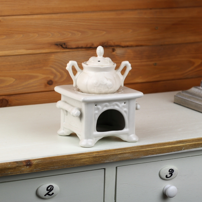 Aróma lampa v tvare kachlí s kanvičkou sa hodí do každého bytu či domu vo vidieckom štýle, rovnako tak aj na chatu či chalupu.
