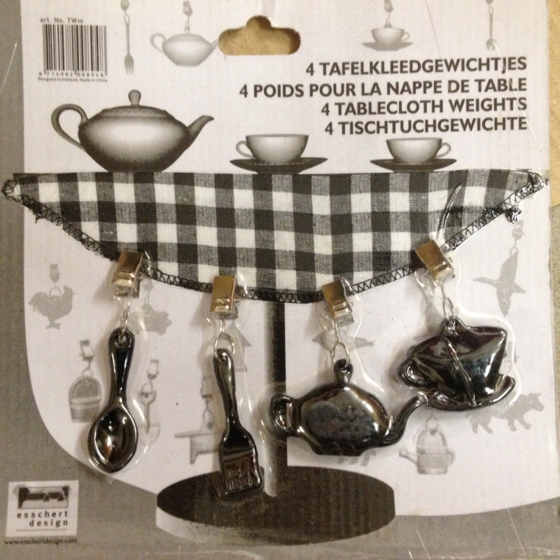 Ťažítko na obrus je určený na zatěžkání obrusov vo vonkajšom prostredí. Zavesíte je jednoducho na okraje obrusu a máte po starostiach s poletujúce textíliou. Set pripomínajúce kuchynský riad je zložený z vidličky, lyžice, kanvice a šálky. Potešte seba alebo urobte radosť touto milou dekoráciou niekomu blízkemu. Pri každom vonkajšom posedení a pri pohľade na drobná ťažítka si na vás iste spomenie.