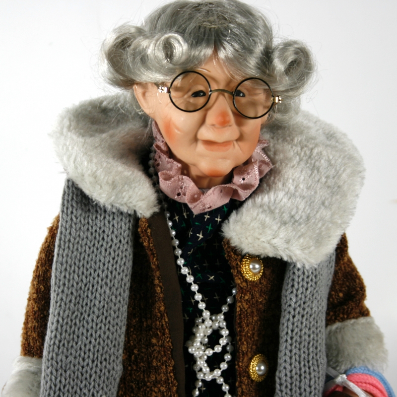 Porcelánová babička je dáma , ktorá o seba stará . Jej strieborné vlasy sú starostlivo naondulované a načesanej do slušivého účesu . Súčasťou jej garderóby je aj elegantný klobúk .