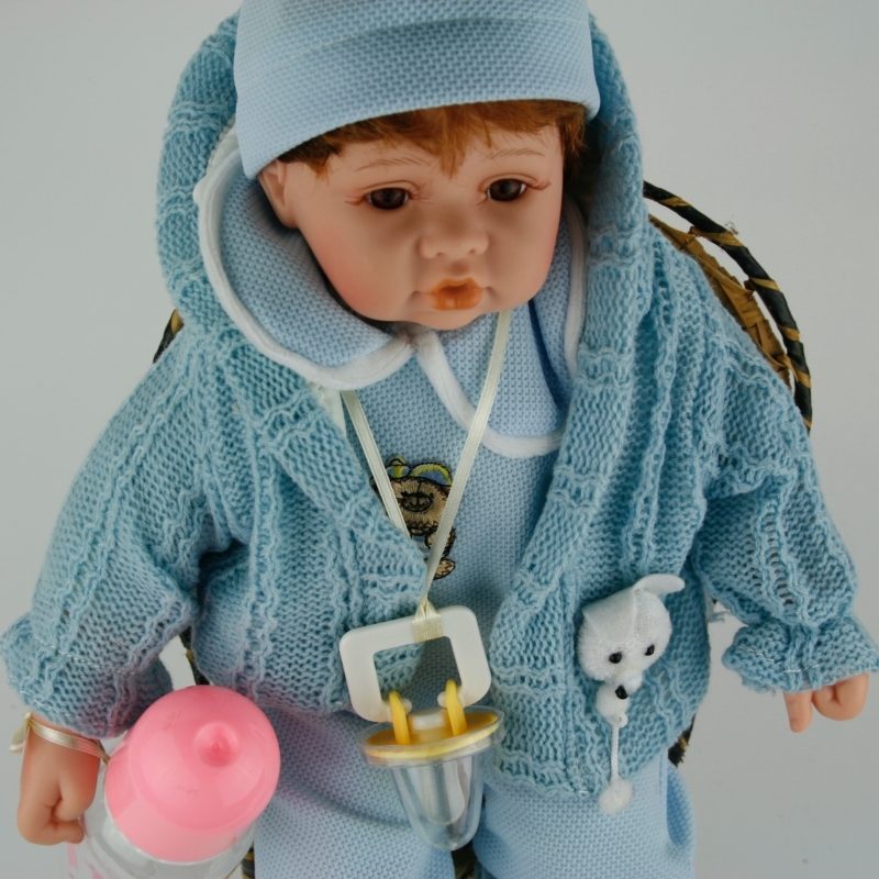 Bábika bábätko 35cm je netradičná zberateľská bábika. Bábike samozrejme nechýba bežné potreby dojčaťa (fľaša a cumlík).