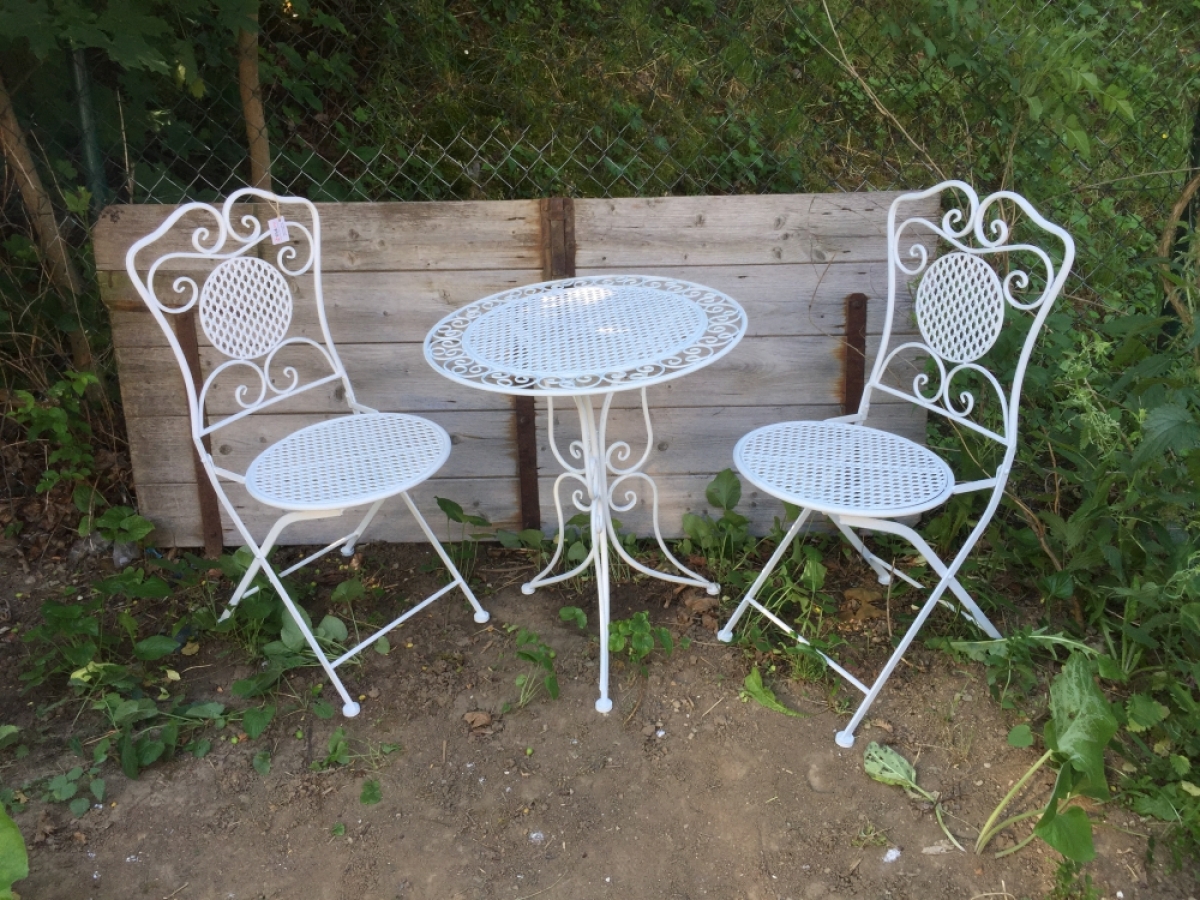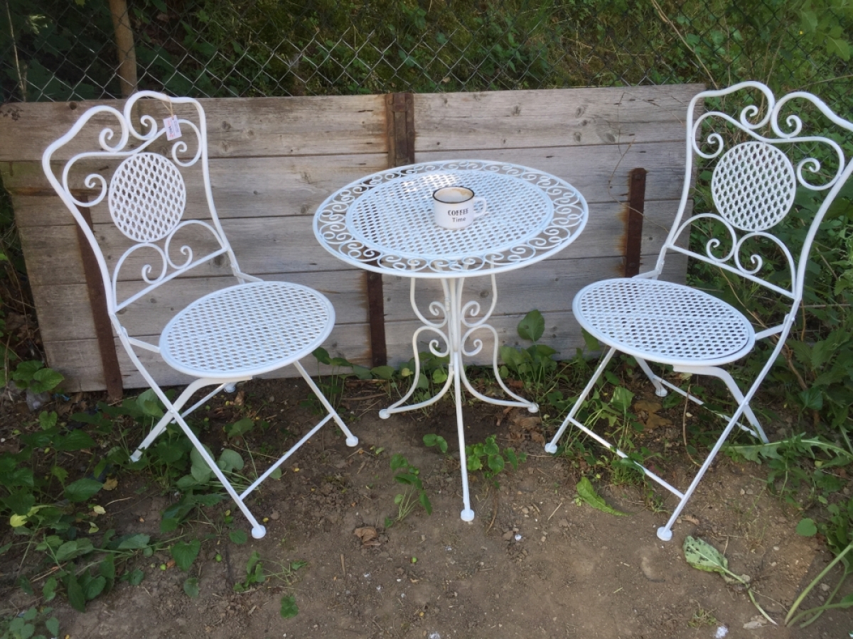 Kovový stolík a pár dvoch stoličiek je pevný a unesie aj 100kg chlapa. Napriek tomu je ľahko manipulovateľný aj pre krehkú ženu.