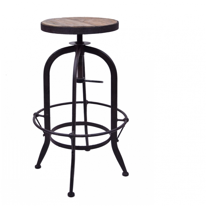 Barová stolička má sedadlo z recyklovaného dreva, ktoré necháva vyniknúť krásu pórov a štruktúry dreva. Kovová masívna konštrukcia v čiernej farbe, polohovanie výška sedadla zaisťuje páčka na spodnej strane.
