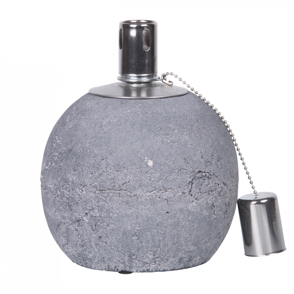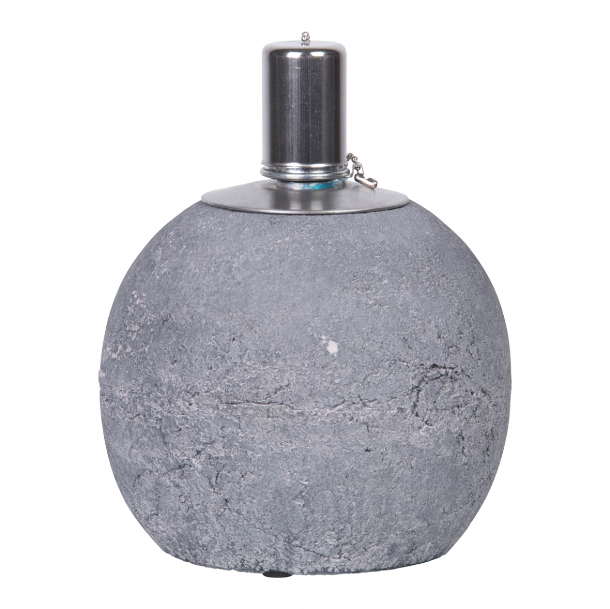 Táto sférická betónová lampa - olejová je ideálna pre dlhé letné večery na záhrade.