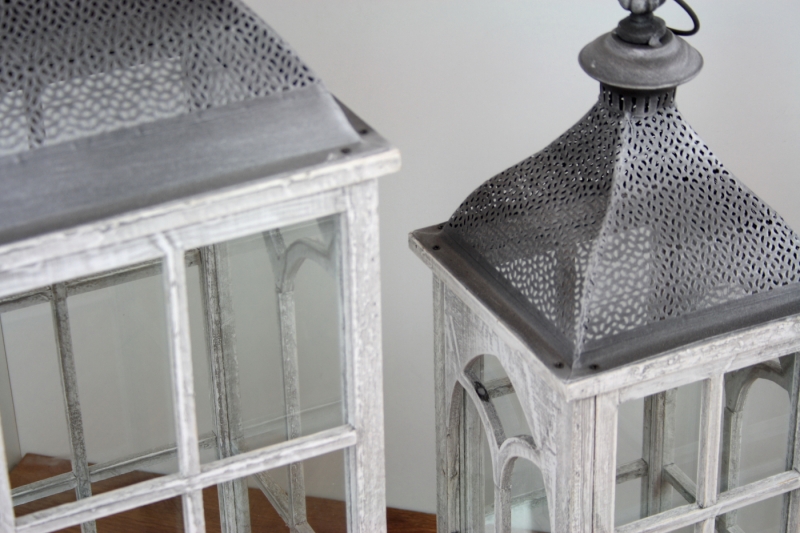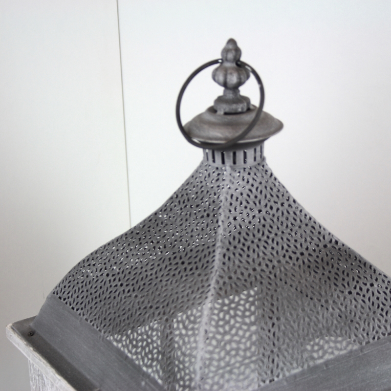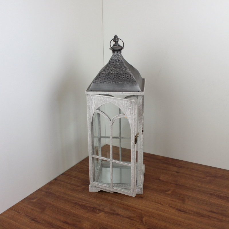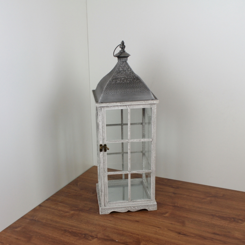 Biela drevená lampáš s kovovou strieškou veľká