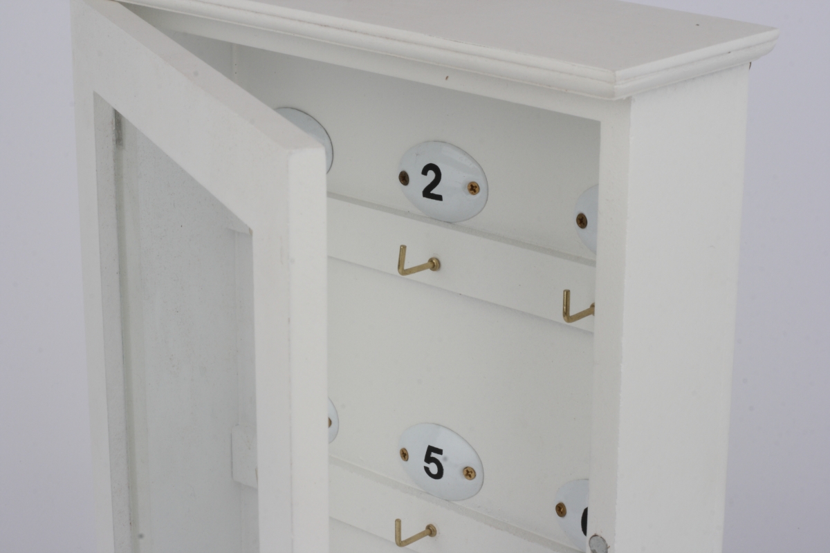 Biela drevená skrinka na kľúče 20x29x6cm patrí ku vchodovým dverám,