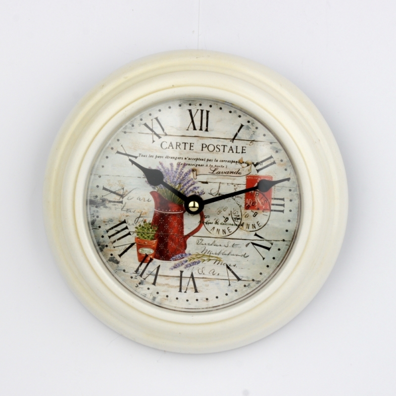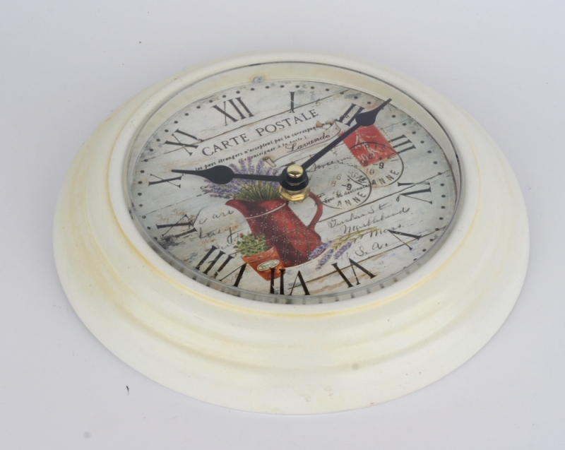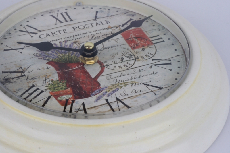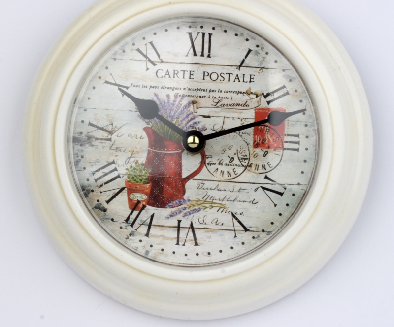 Biele nástenné hodiny s levanduľou 22cm do vidiecky zariadeného interiéru.