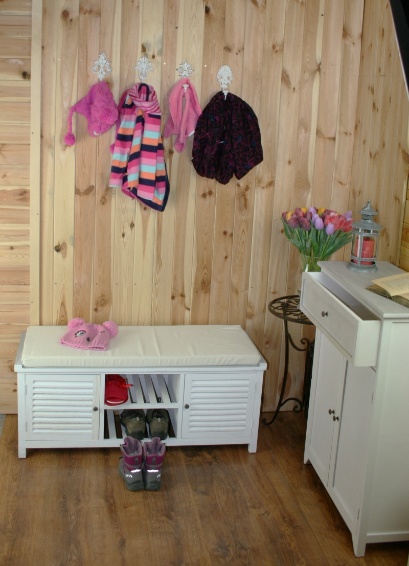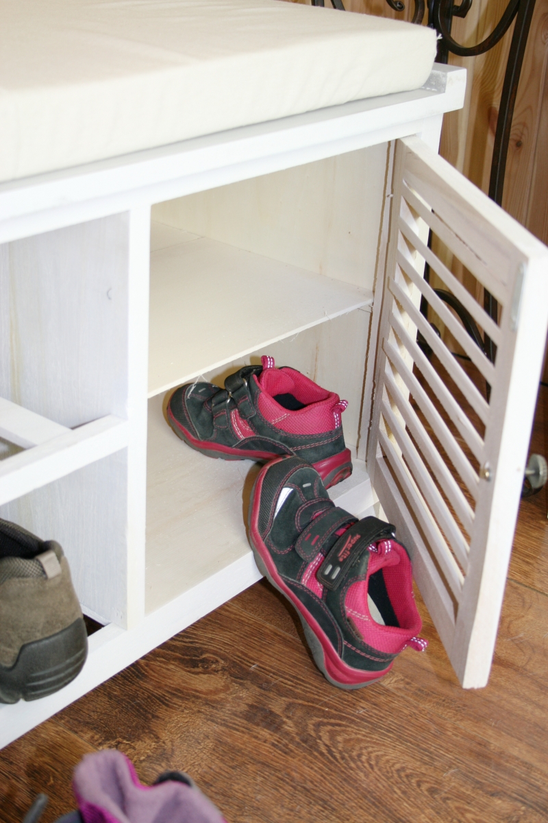 Biela farba nábytku je veľmi univerzálny a vidiecky štýl veľmi obľúbený. Botník urobí veľkú službu doma i na chalupe.