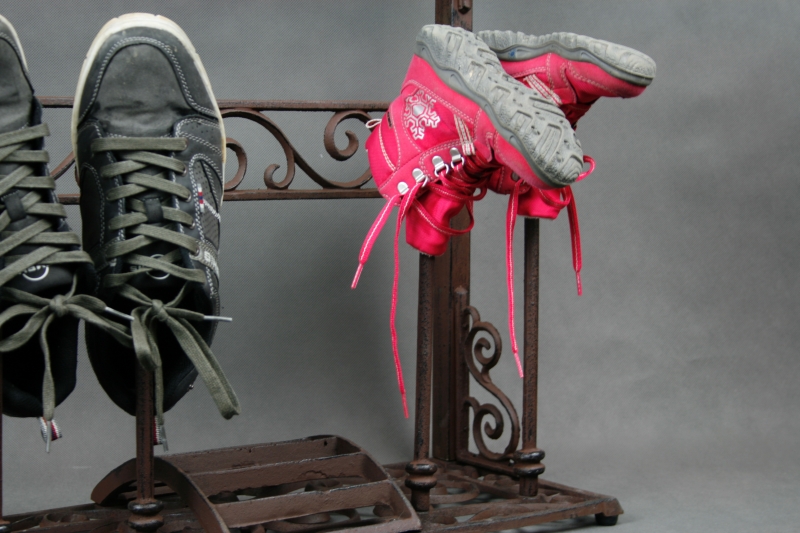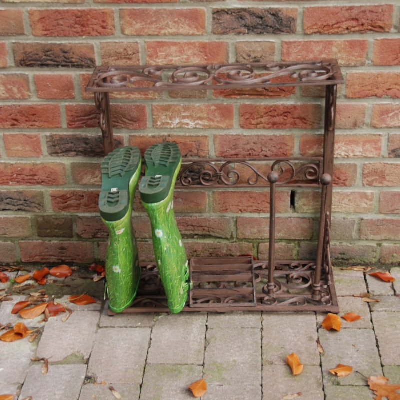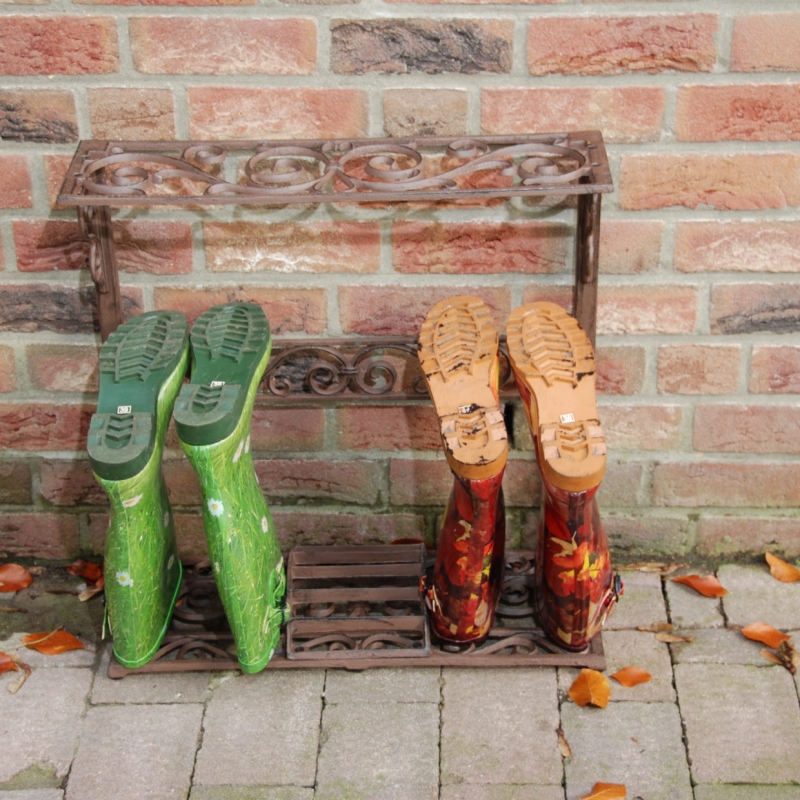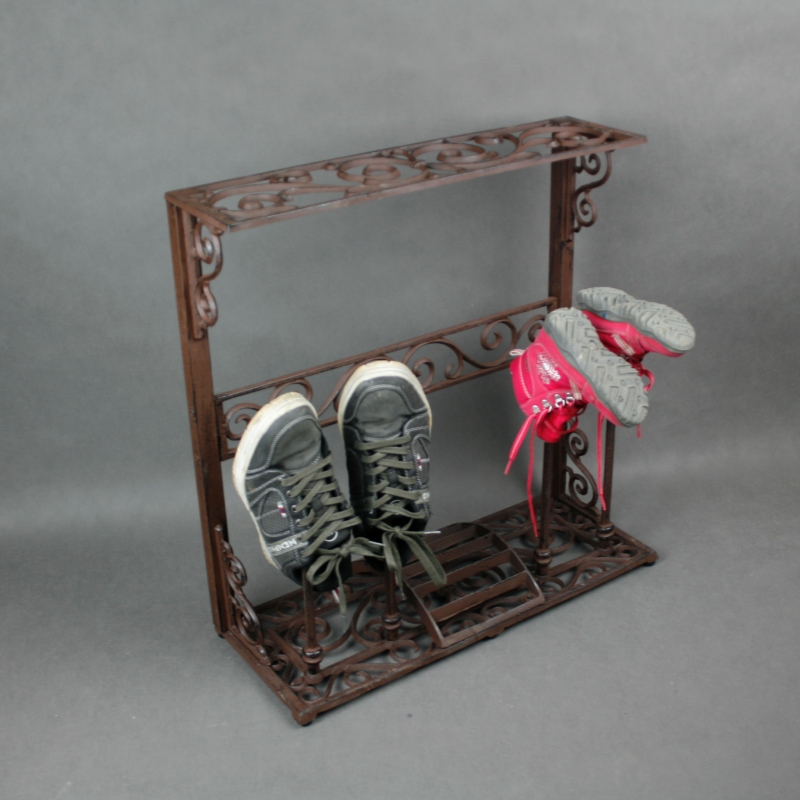 Skrinka na topánky /stojan na topánky je vyrobený z kvalitnej liatiny. Na stojan sa dajú odložiť dva páry topánok. V strede stojana je škrabadlo na topánky.