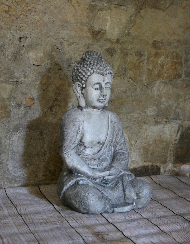 Budha šedý Polyresin 47cm navodí svojou prítomnosťou príjemnú a upokojujúcu atosféru. Soška Budhu, zakladateľa budhistického učenia, je obľúbenou dekoráciou interiéru i záhrady.