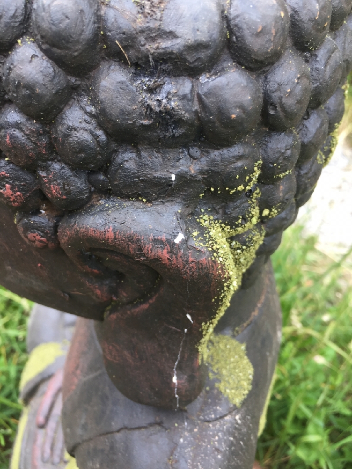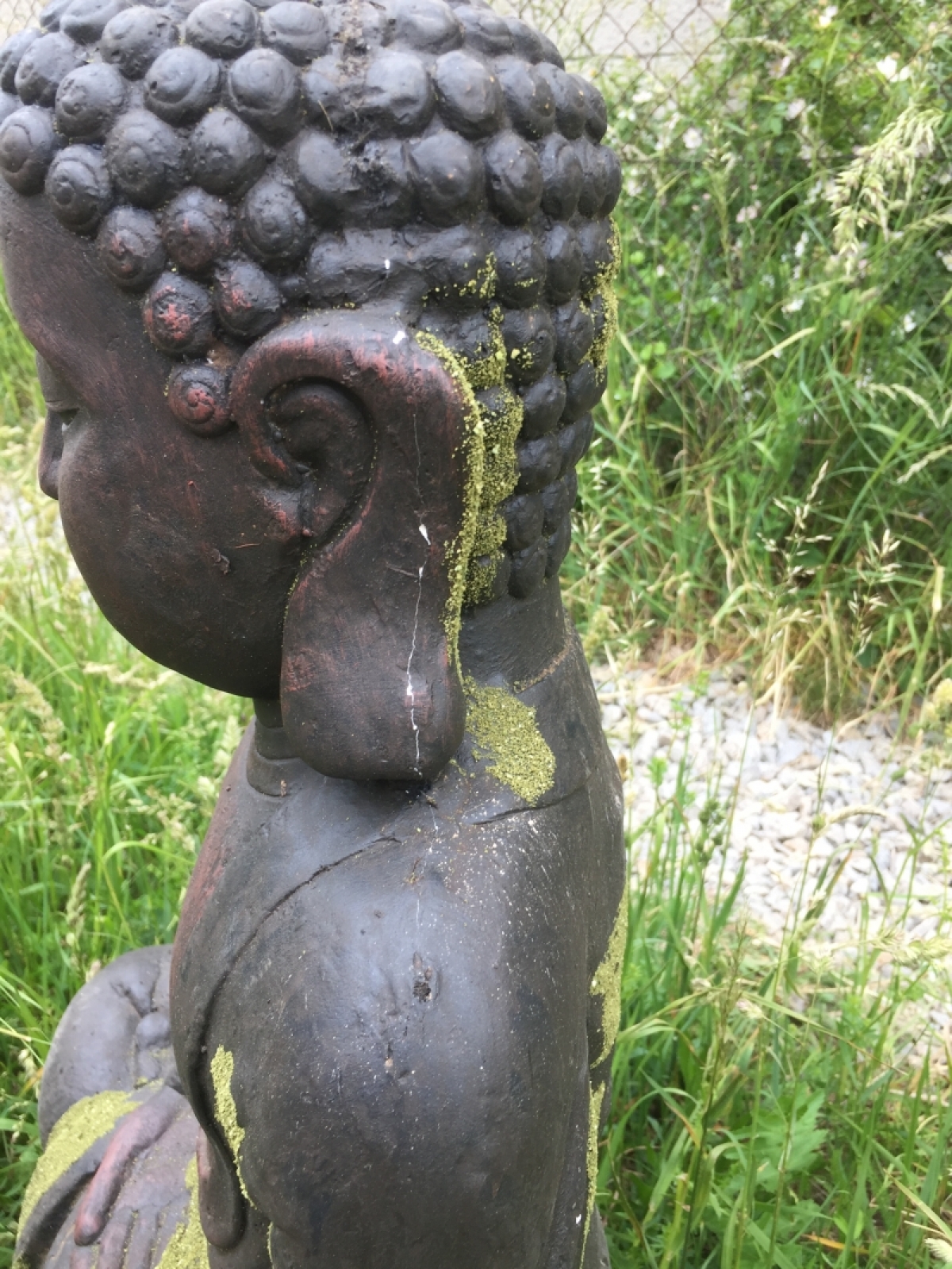 Vyřazeno z důvodu prasklin na pláští Buddhy. Opravitelné vezbarvým lakem, nebo lepidlem an polyresin.