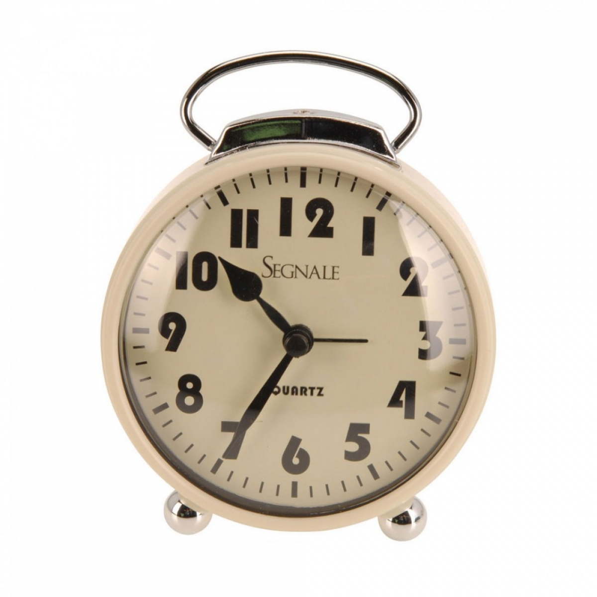 Budík v retro stylu o velikosti 10x12cm v béžové barvě.