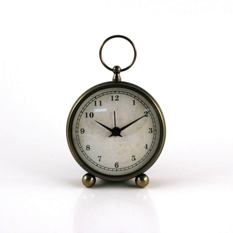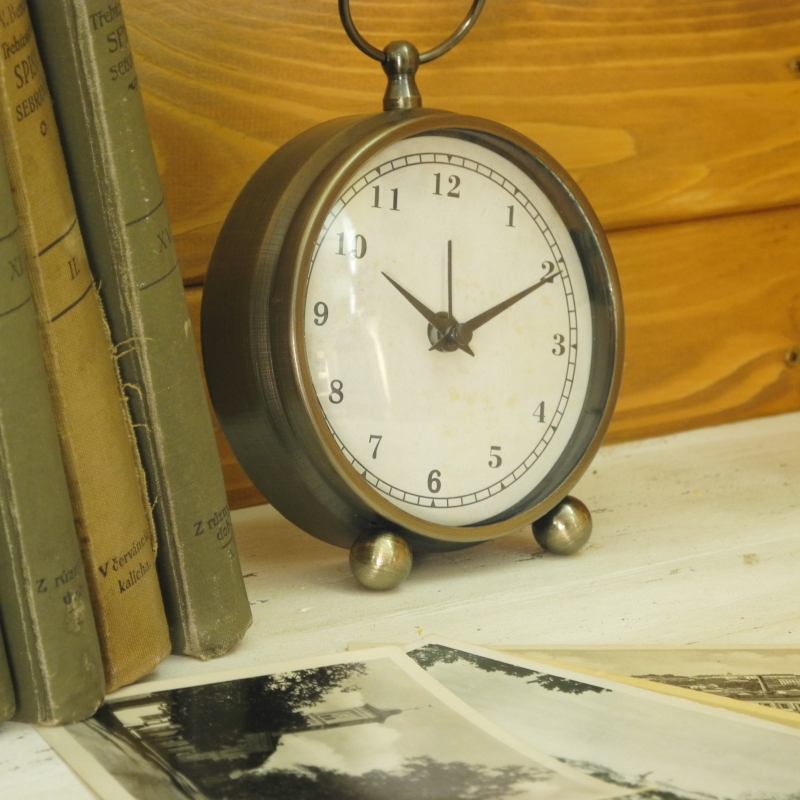 Budík môže stáť na dvoch strieborných okrúhlych nôžkach alebo byť zavesený na kovovom očku.