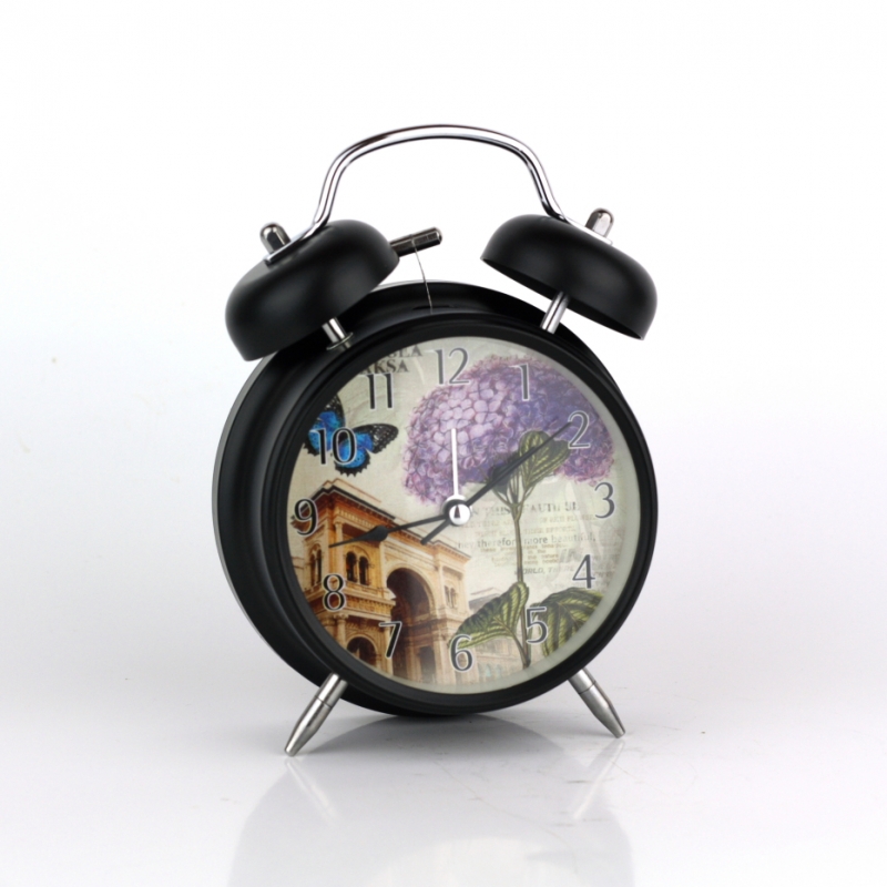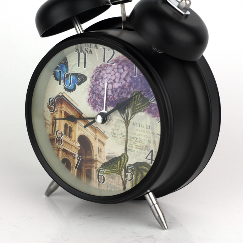 Budík na nočný stolík hortenzie 17cm s pestrofarebnými motívmi veľkými čitateľnými číslami.