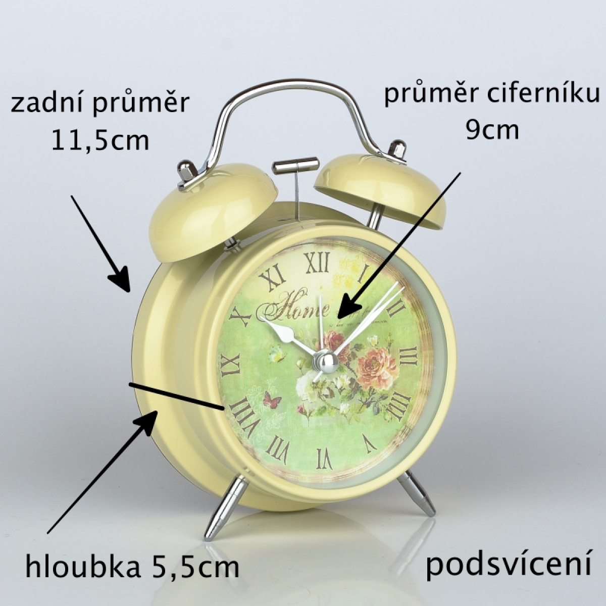 Budík s kvetinovým motívom HOME 12x15cm pre romantické duše a milovníkov retro štýlu.