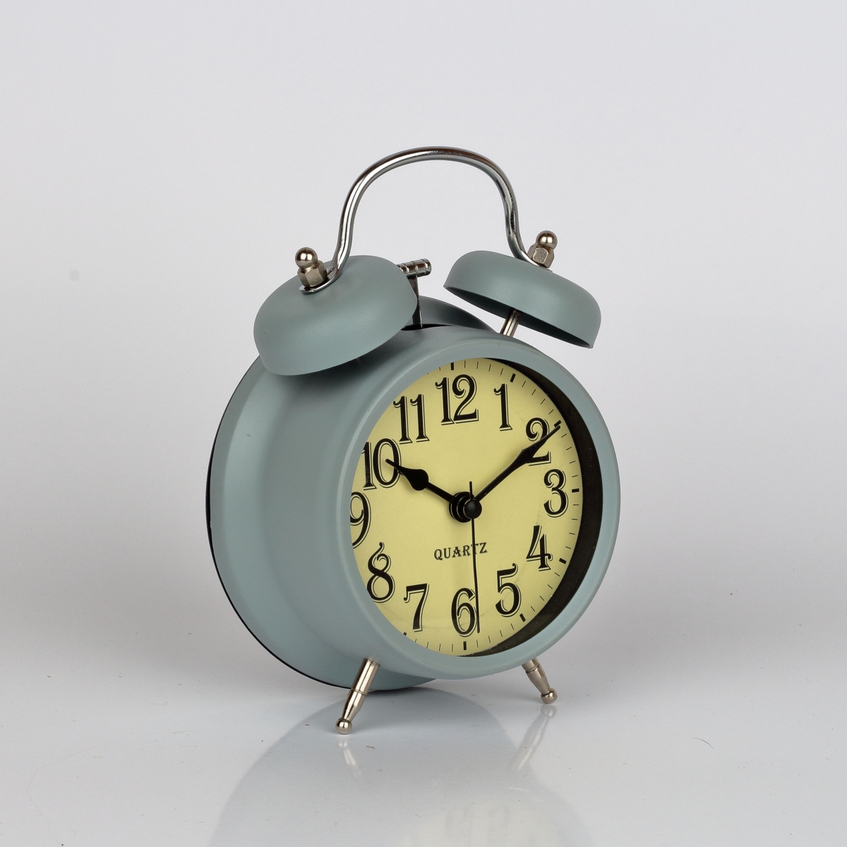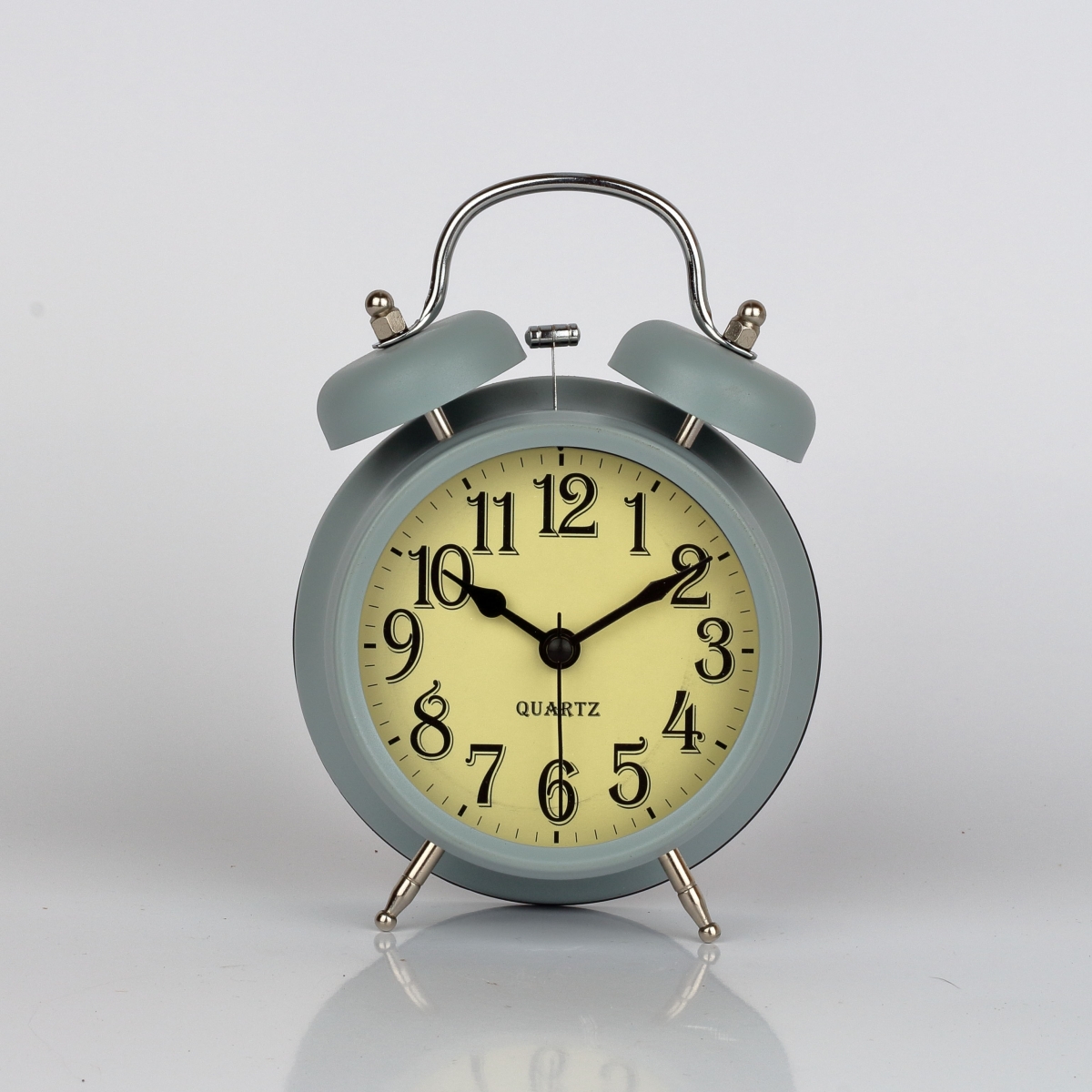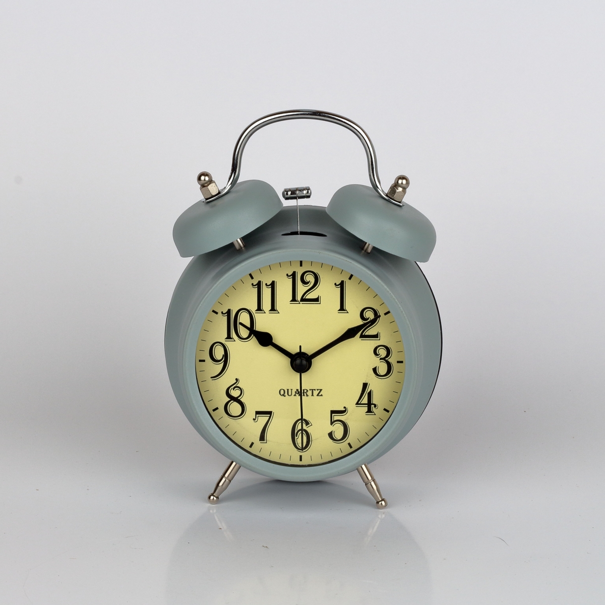 Budík sivý 12x6x17cm. Presne taký mal na nočnom stolíku dedko. Tento retro budík má veľké číslice a kovové nožičky. Je vybavený kvalitným hodinovým strojčekom quartz.