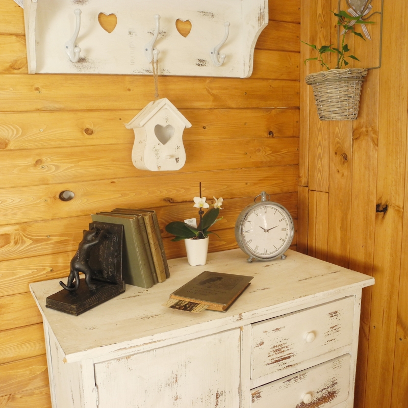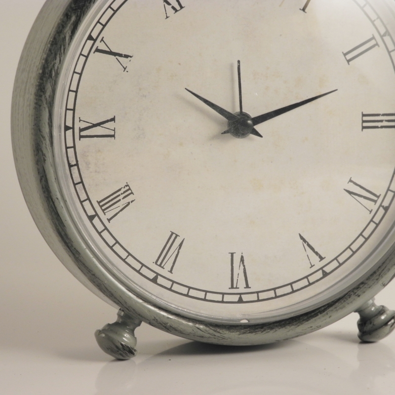 Budík plechový je natretý svetlou farbou má priemer 17 cm, celková výška je 23 cm a hĺbka 4,5 cm. Jeho ciferník je chránený priehľadným plexisklom.