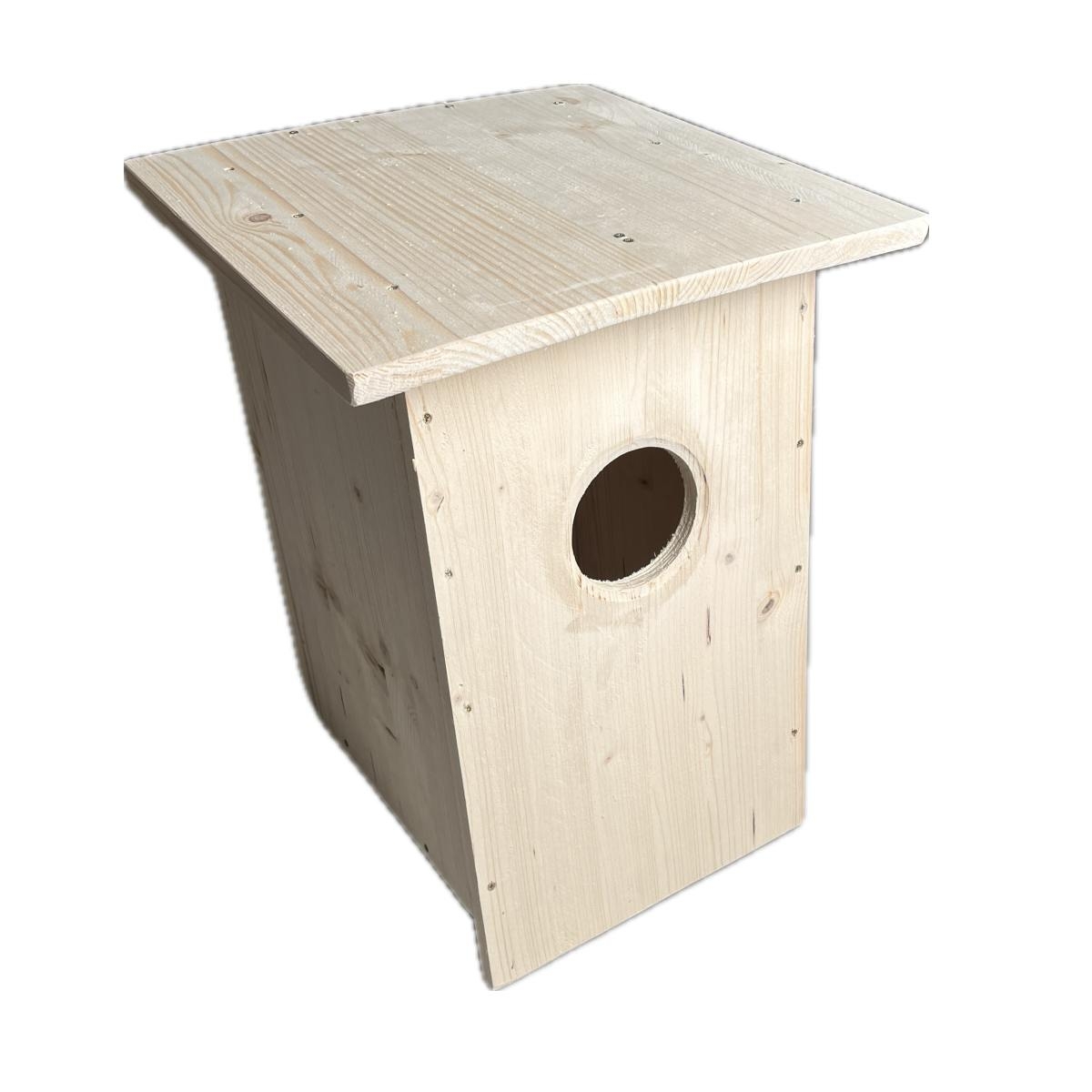Budka navržená přímo pro kavku obecnou. Větší dutinový pták, který potřebuje prostor, klid a bezpečí. Vletový otvor o průměru 60–70 mm umožňuje snadný vstup a zároveň chrání hnízdo před menšími druhy a predátory.
