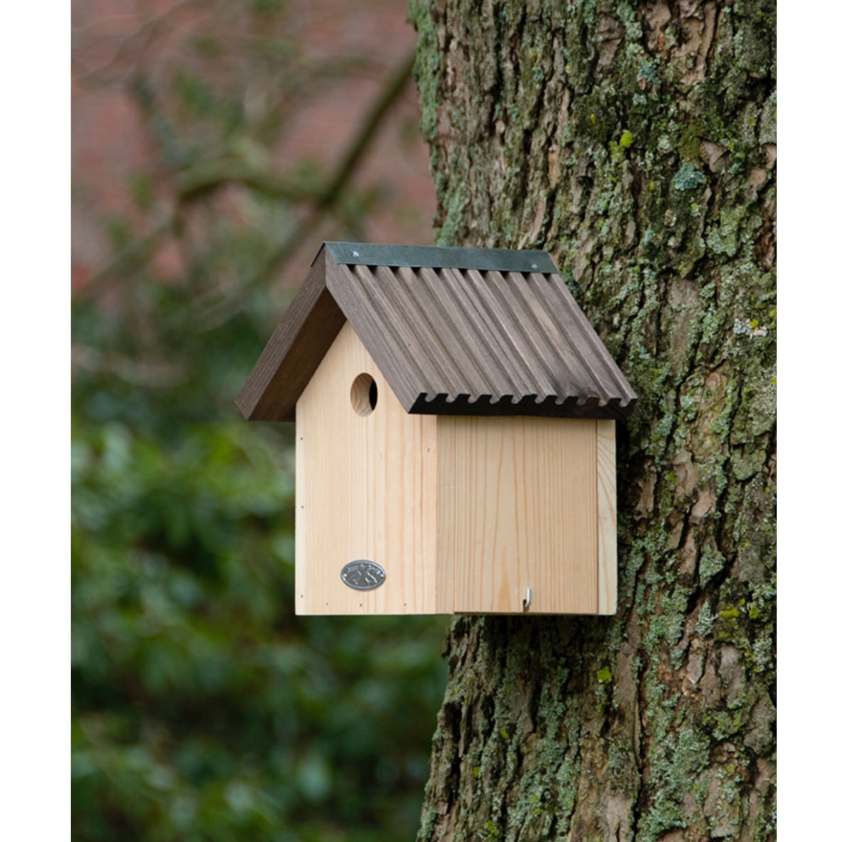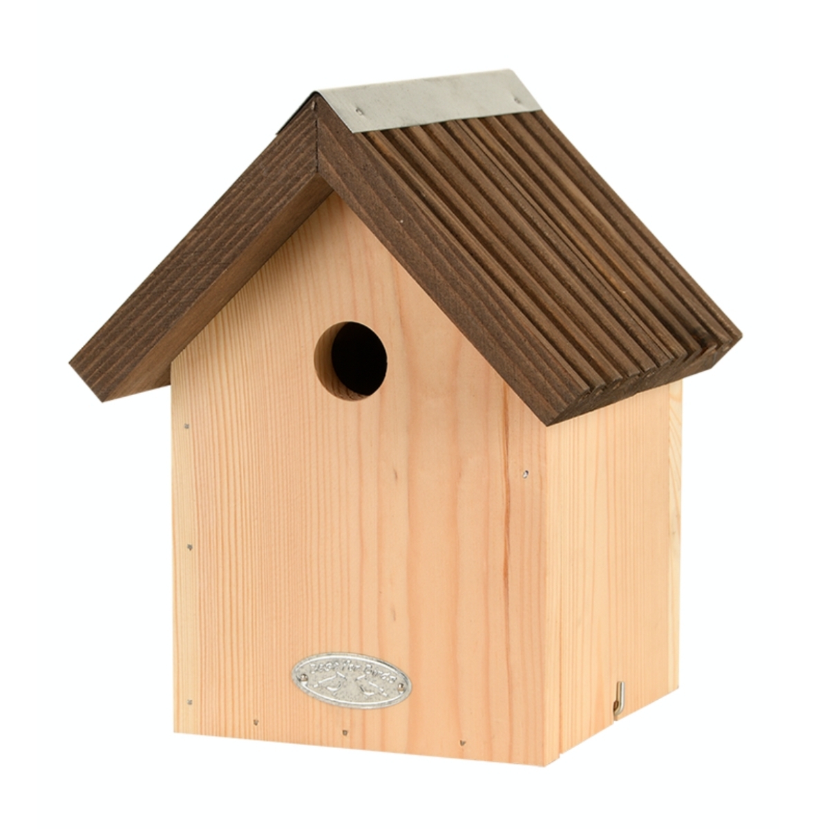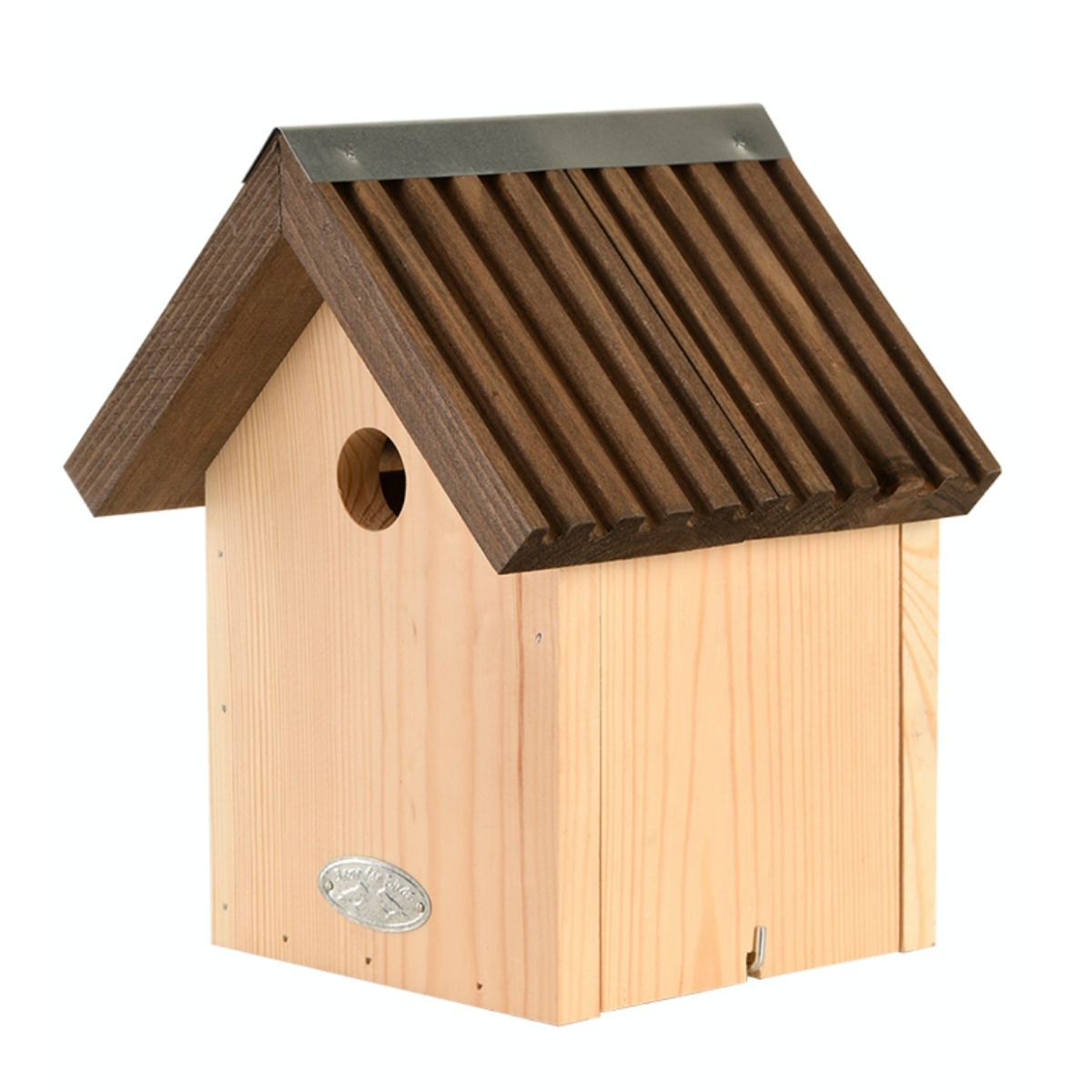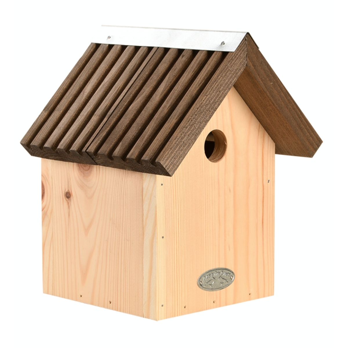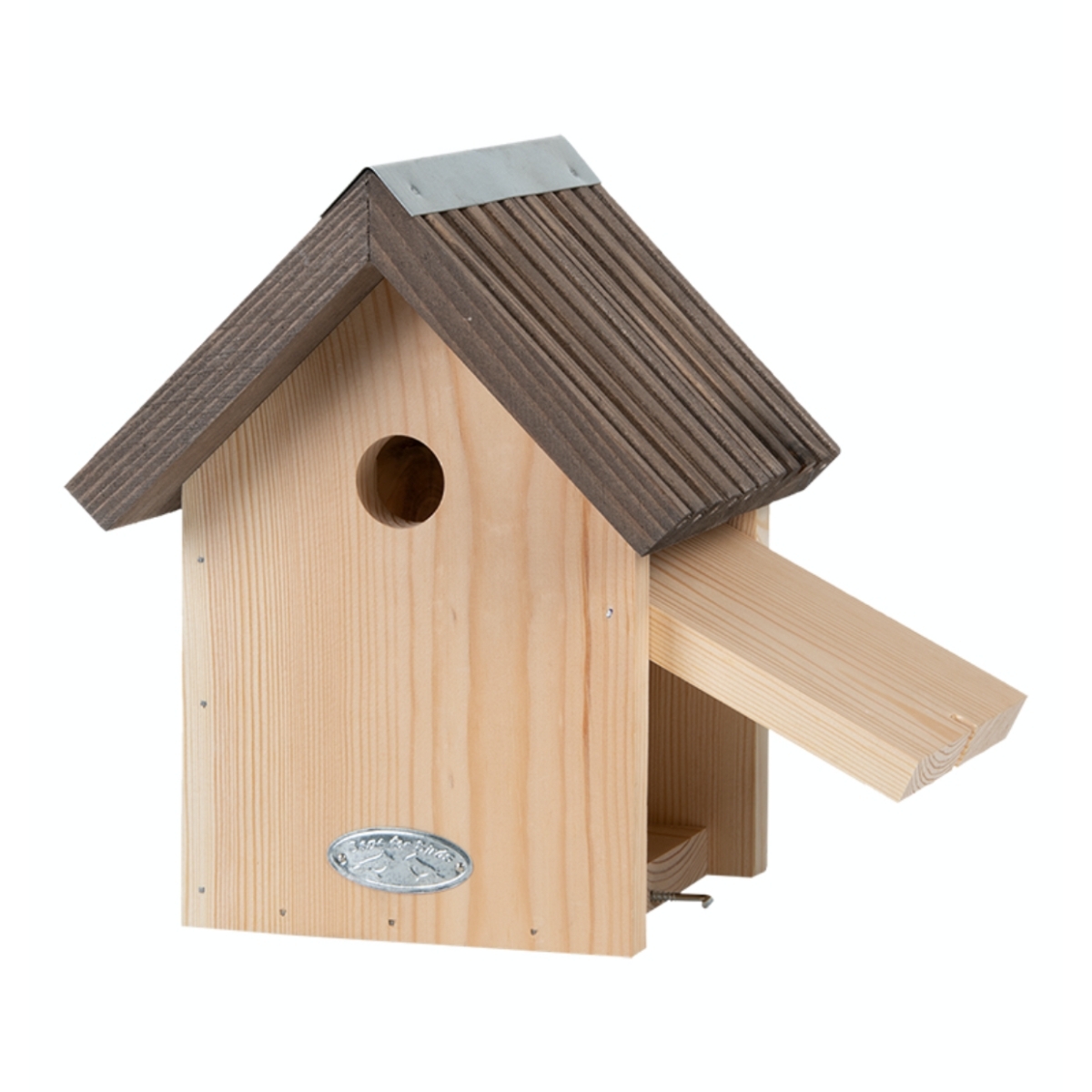Búdka pre sýkorku vyrobená z prírodných materiálov bola navrhnutá pre sýkoru modrinku. Okrem sýkory modrinky môžete v tomto vtáčom domčeku očakávať aj sýkoru chocholatú, sýkoru bahennú, sýkoru vŕbu a sýkoru uhoľnú.