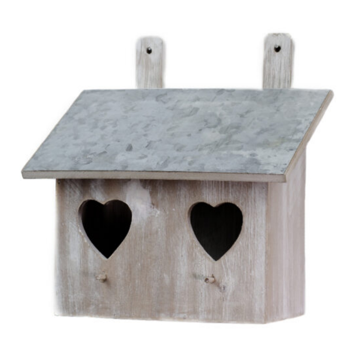 Búdka pre vtáctvo má dva vletové otvory v tvare srdca. Pod každým otvorom je pripevnené malé bidielko, na ktoré si vtáčik pohodlne pristane. V záhrade môžete búdku pre vtáctvo zavesiť na strom alebo na stenu kôlne. Bude peknou ozdobou vašej záhrady a vtáčikom zase poskytne bezpečný domov.