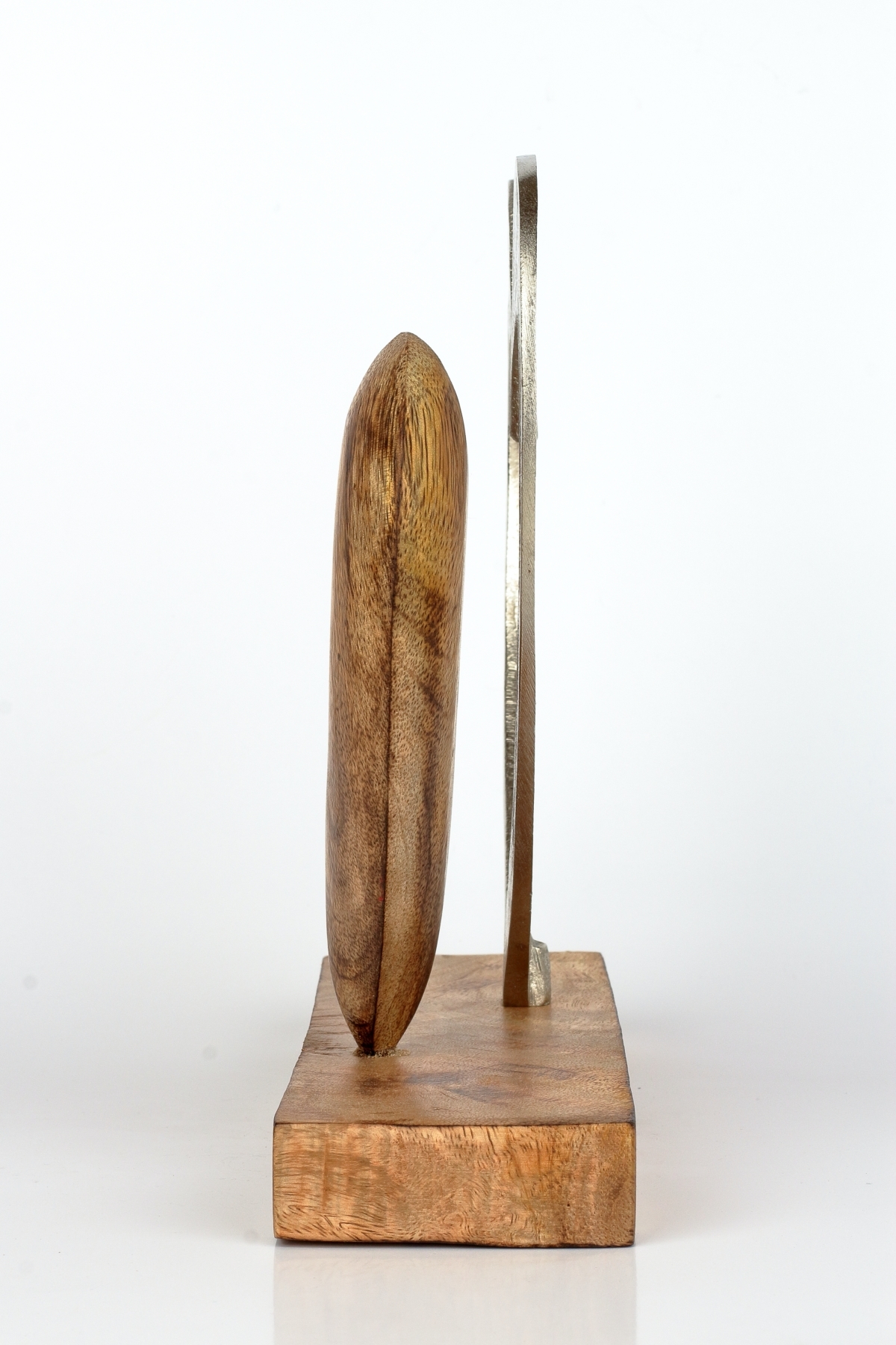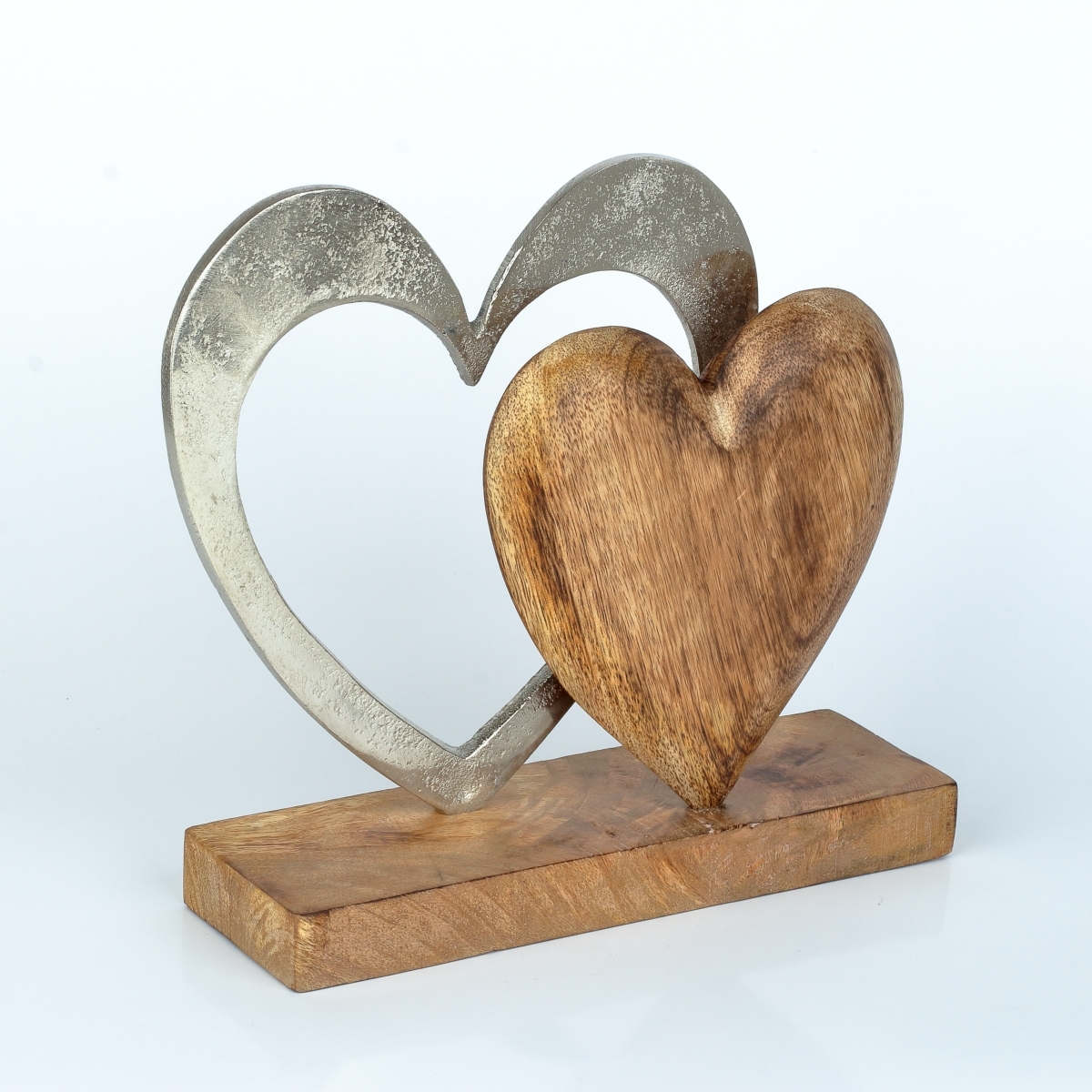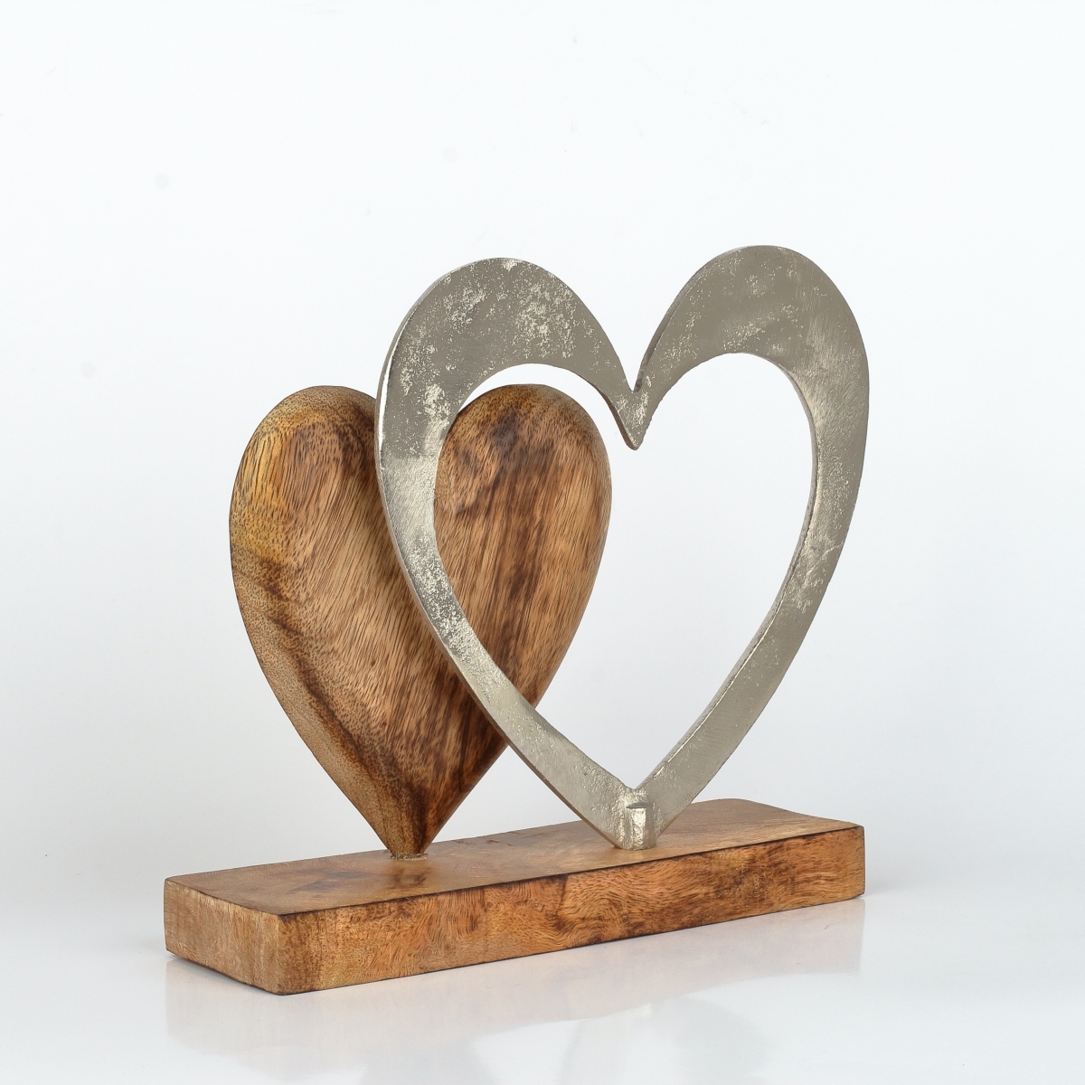 Bytová dekorácia dve srdcia z hliníka na drevenom podstavci
