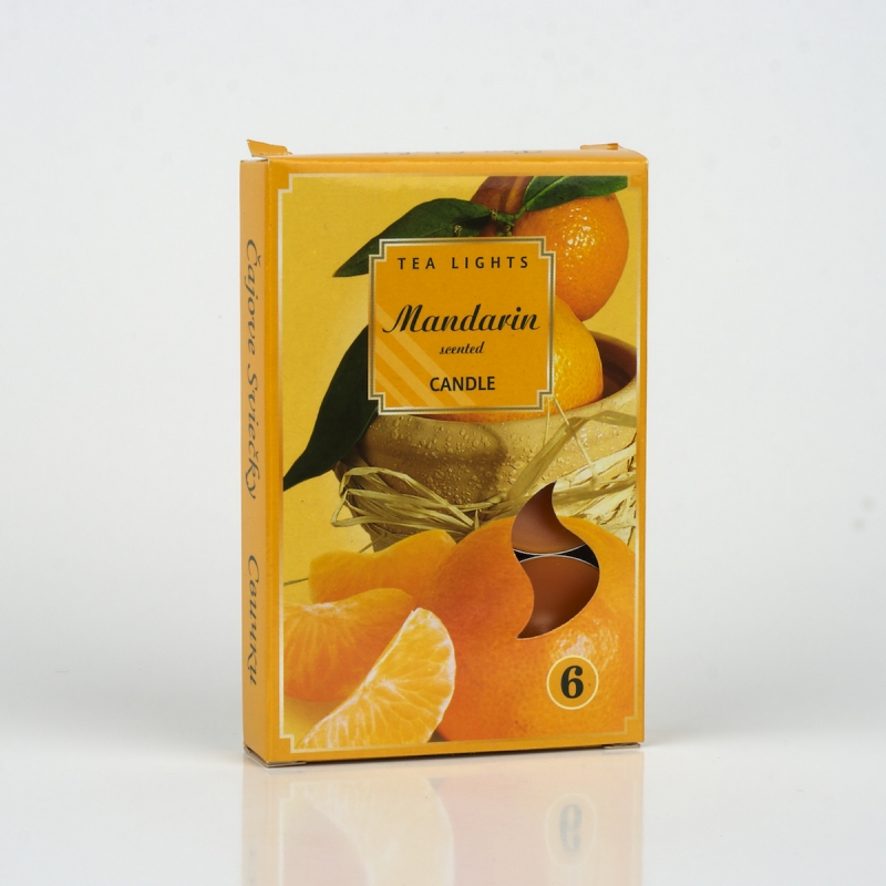 Svíčka čajová vonná mandarinka sada 6ks. Vhodná dekorace, která příjemně osvěží interier i před samotným zapálením. Příjemná typická vůně mandarinky ..