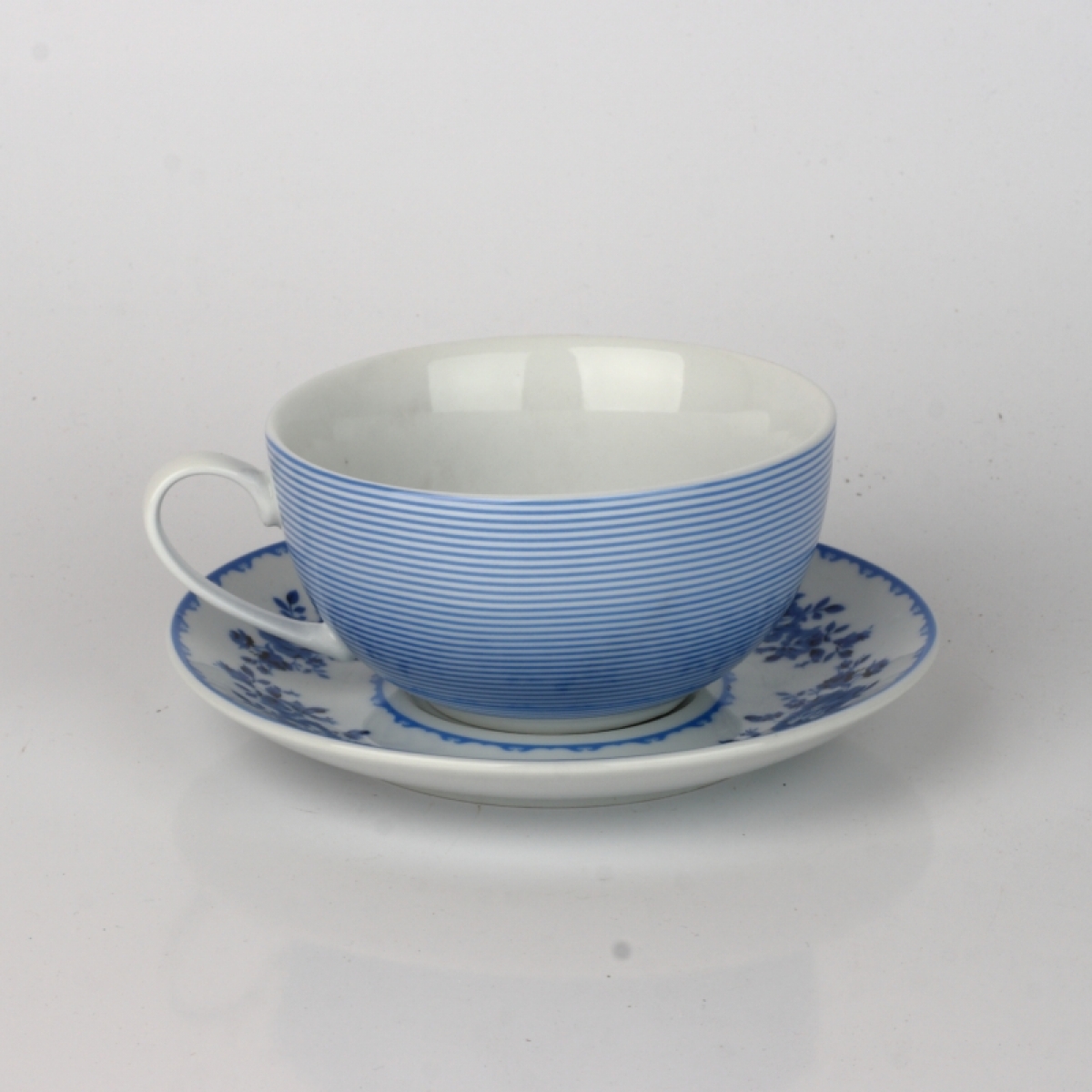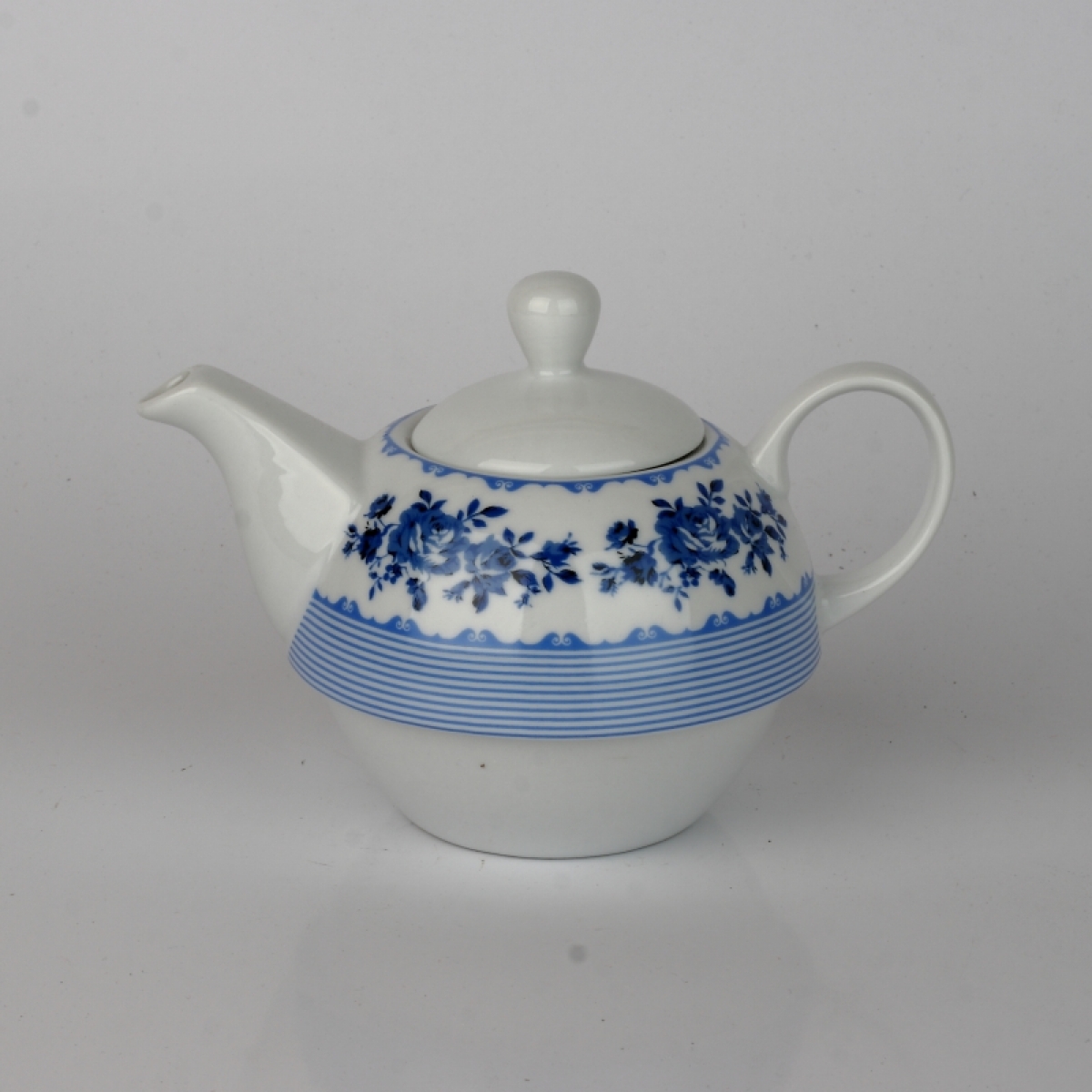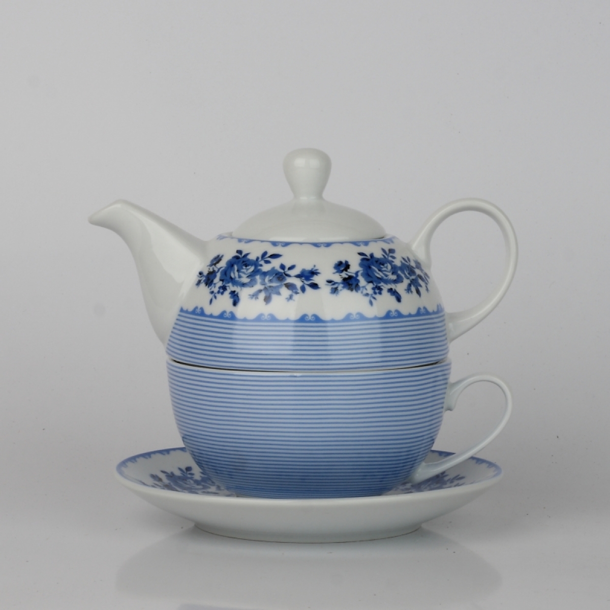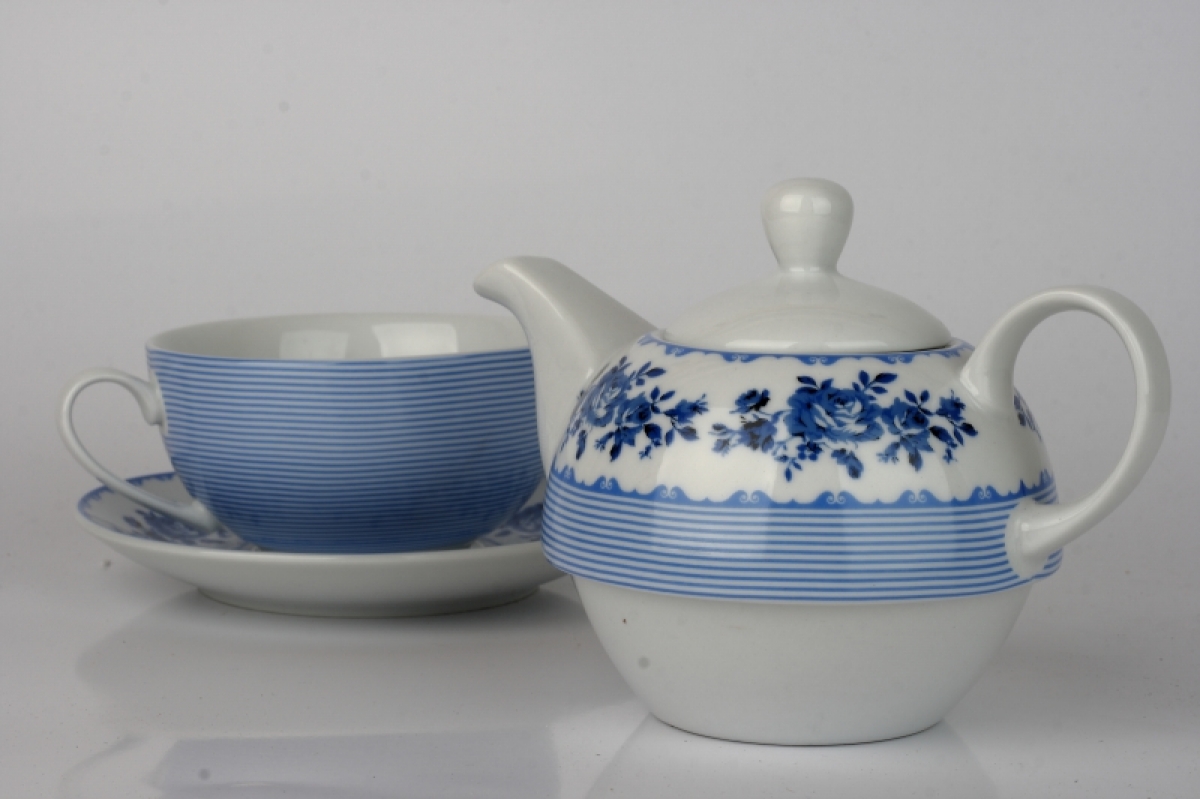 Čajový set kanvička a hrnček modré kvety / pruh