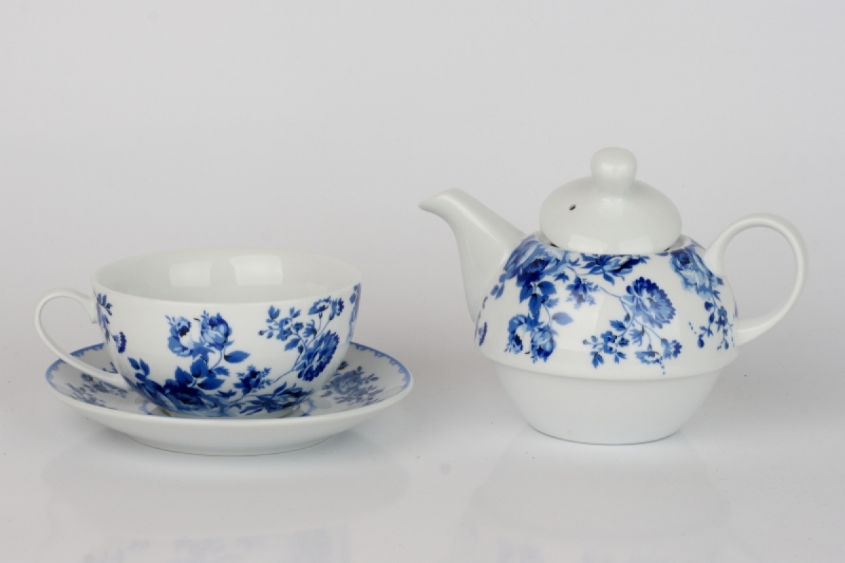 Čajový set kanvička a hrnček modré kvety