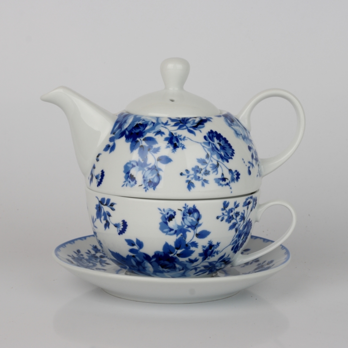Čajový set konvica a hrnček modré kvety
