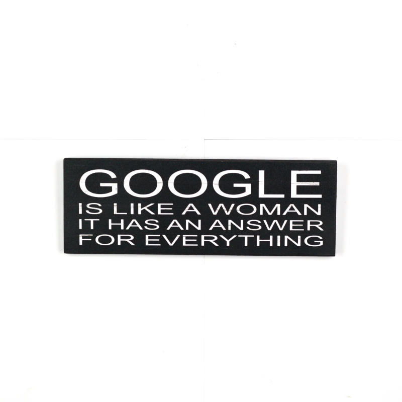 Cedule Google is like a woman 40x14cm Vás zaručene pobaví!