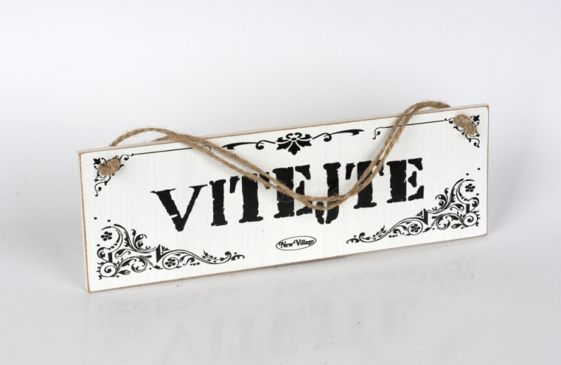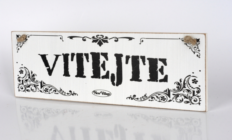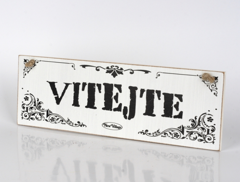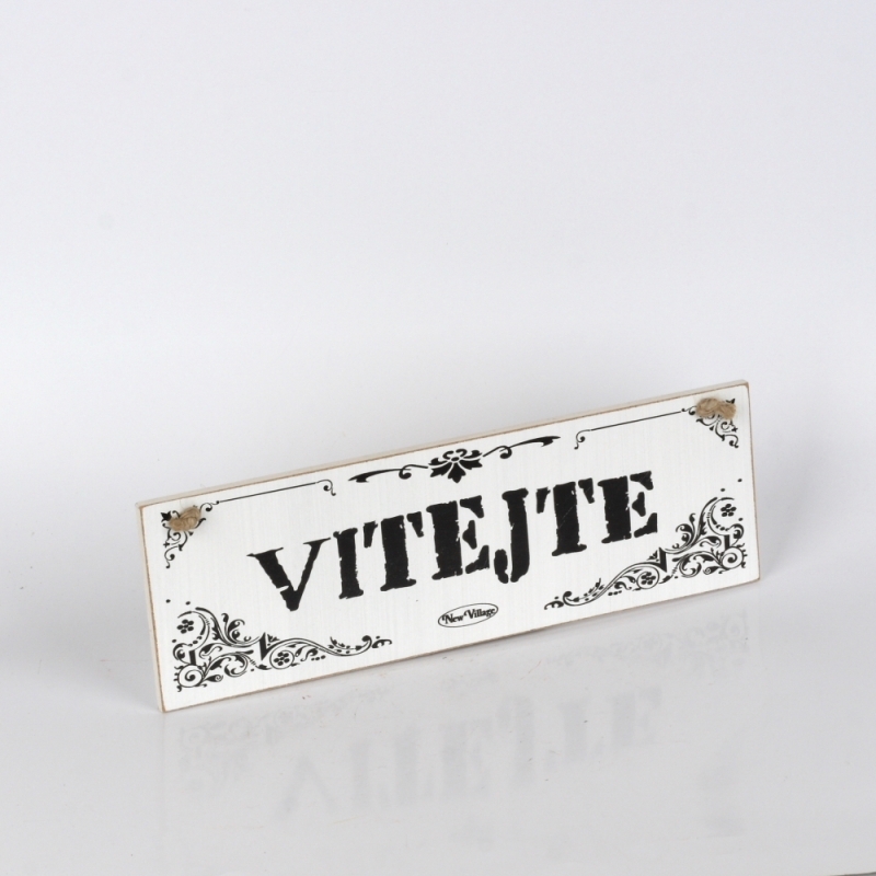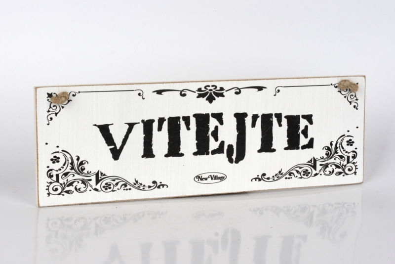 Ceduľa bez slov osloví všetky prichádzajúce návštevníkov. Biela drevená cedule je zdobená čiernymi ornamentami a nápisom VITAJTE. Jednoducho ju zavesíte vďaka jutovému povrázku.