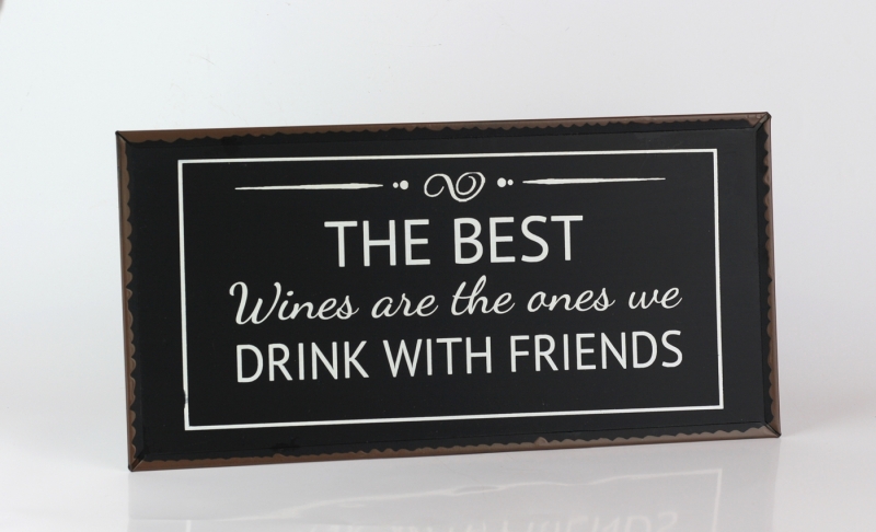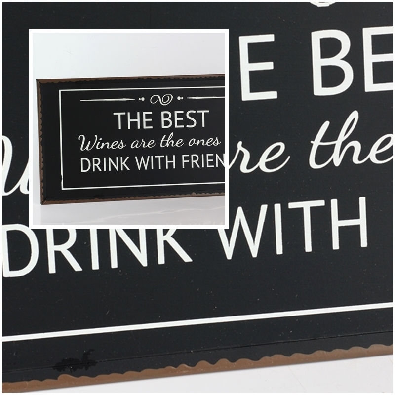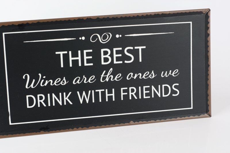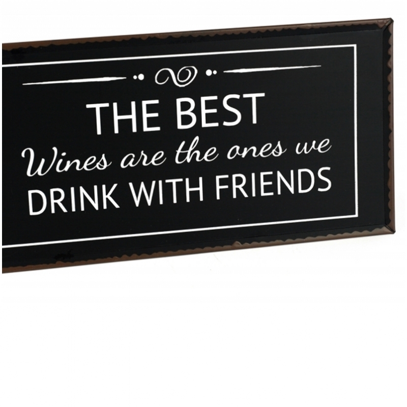 Ceduľa The best wines 40x20cm ako nástenná dekorácia pre milovníkov dobrého vína. Aj keď text na ceduľu hovorí, že "Najlepší vína sú tie, ktoré popíjame s priateľmi".