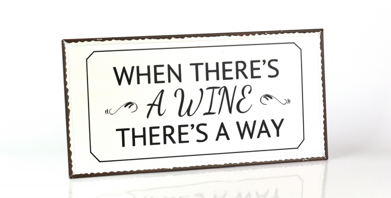 Ceduľa When theres wine 40x20cm je ďalším kúskom zo setu plechových ceduľou, ktoré sa týkajú dobrého vína. Na tejto je napísané "Keď je víno, je aj cesta".