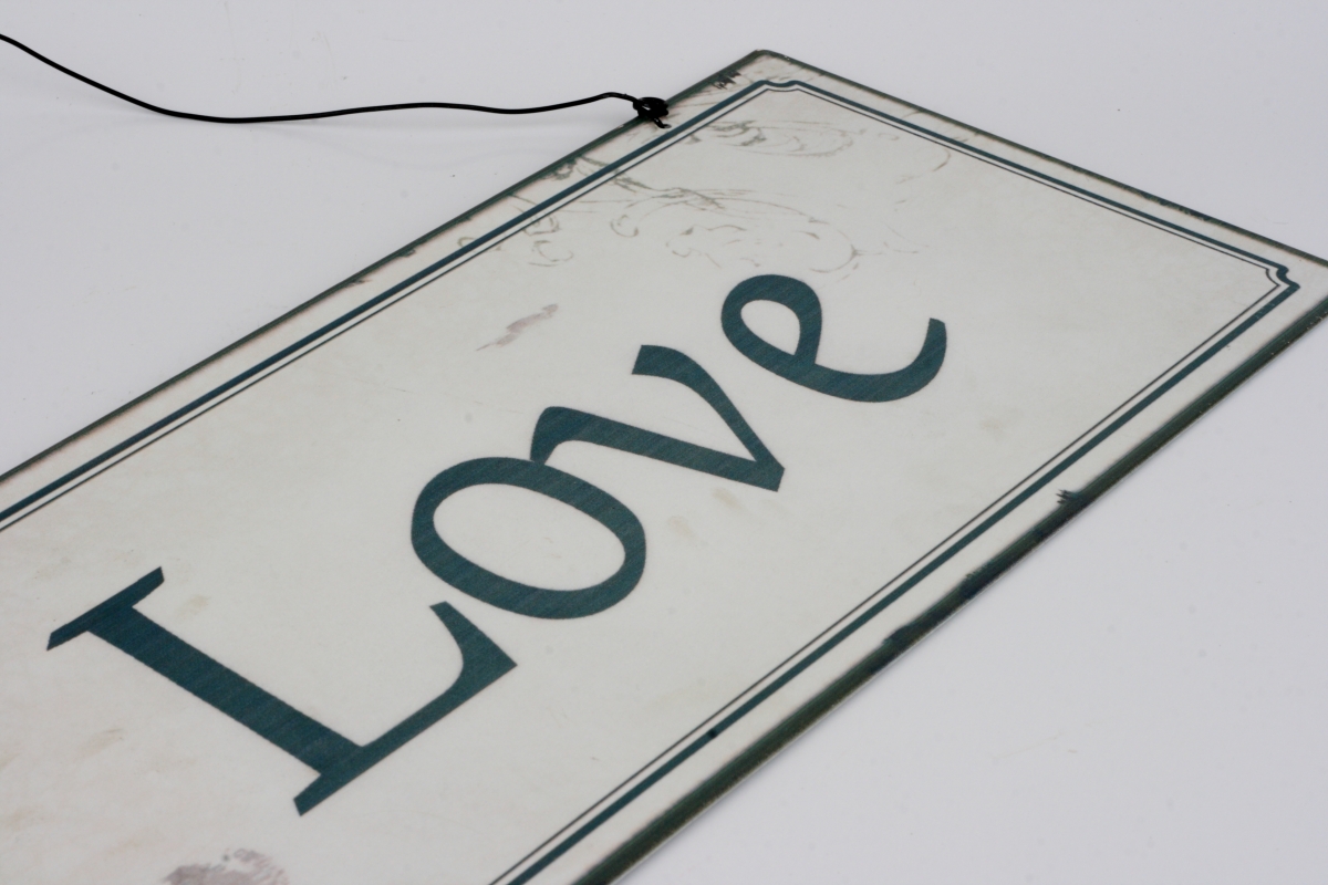 Plechová ceduľa s nápisom LOVE a drôtikom na zavesenie urobí radosť nielen vám, ale aj vašej drahej polovičke alebo vašim blízkym.