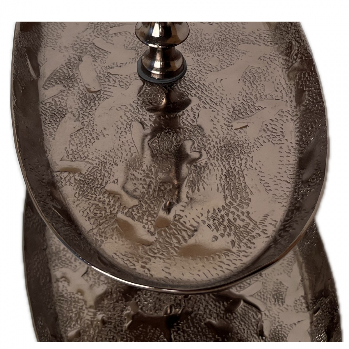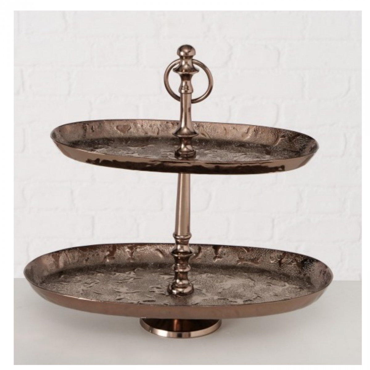 Etažér - Ide o štýlový dekoračný etažér, doplnok interiéru.Nejedná sa o výrobok určený na styk s potravinami. V prípade použitia napr. na ovocie, vyplňte odkladaciu plochu papierom na pečenie, alebo potravinárskou fóliou. Ide o dekoráciu.