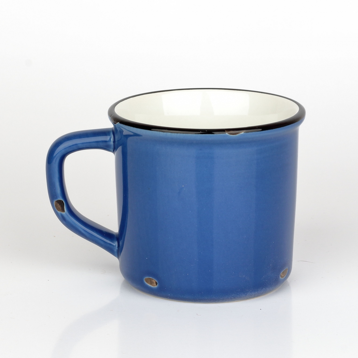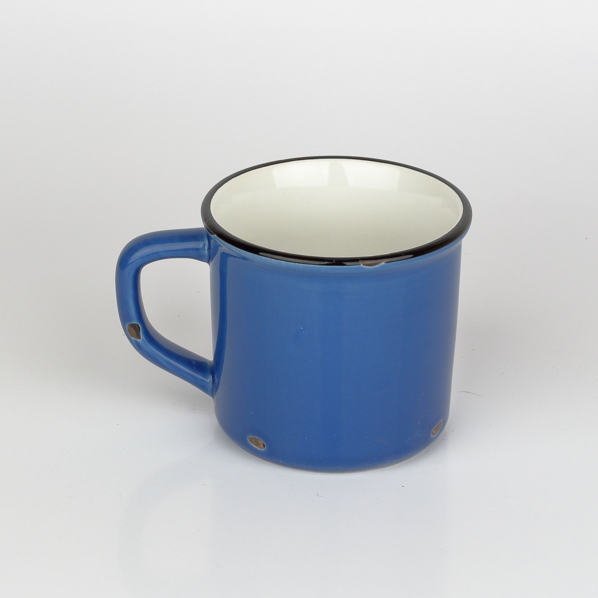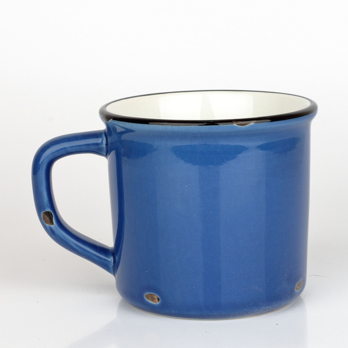 Hrnček pôsobí otlčeným dojmom a zjavné "vady a kazy" dotvára jeho jedinečný vzhľad.