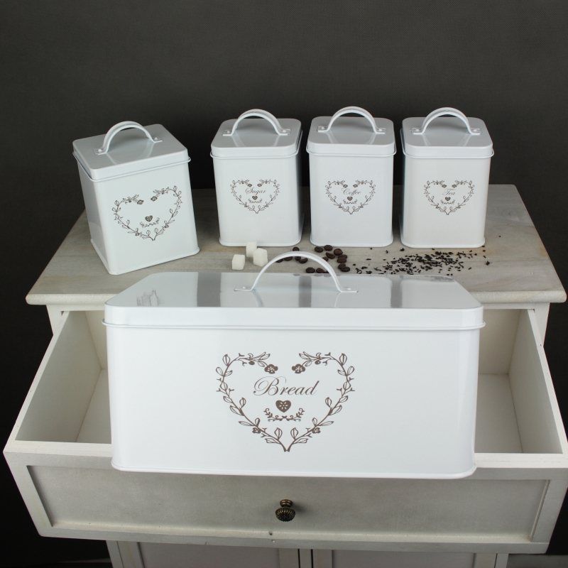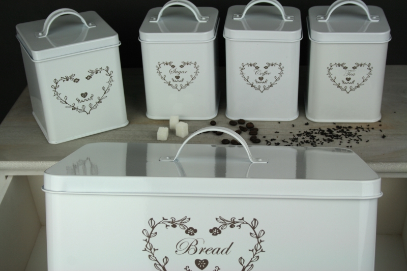 K chlebníka patrí aj sada dóz na kávu, cukor čaj a iné potraviny.