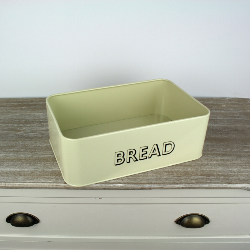 Chlebník s nápisom BREAD krémový 32,5x21x12cm ako praktický doplnok kuchynskej linky. Kvalitný kovový chlebník bude ozdobou Vašej kuchyne a predĺži čerstvosť Vášho pečiva.