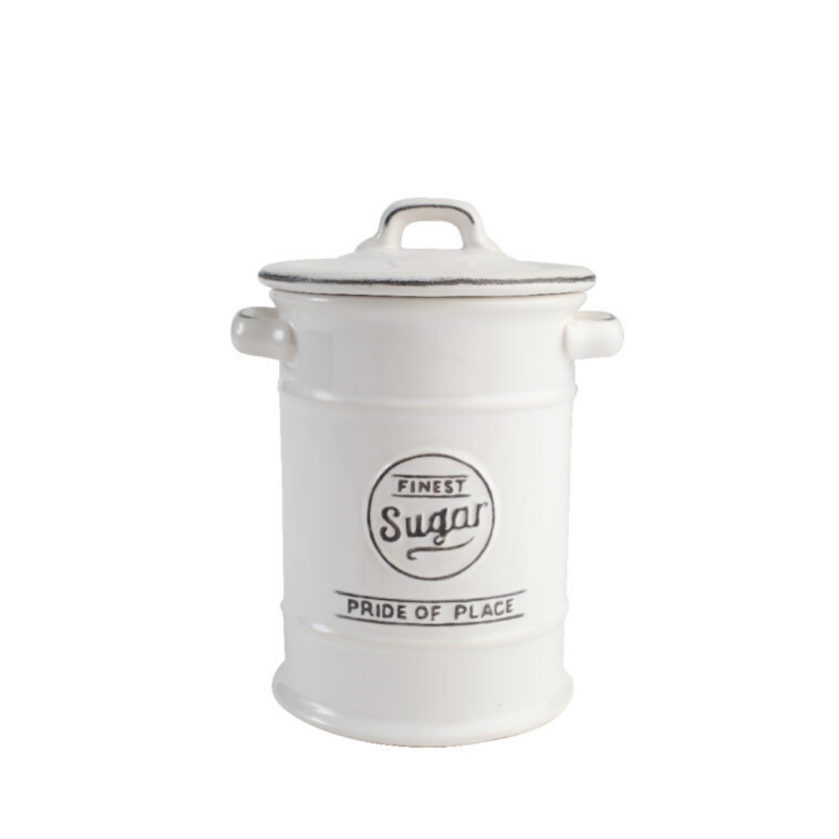 Dóza s pokrievkou, vhodná na uchovávanie cukru. Je opatrená nápisom FINEST Sugar, a tiež PRIDE OF PLACE, čo je značka jej výrobcu. Vďaka svojmu štýlovému vzhľadu, sa bude vynímať na polici, či linke, každej kuchyne.